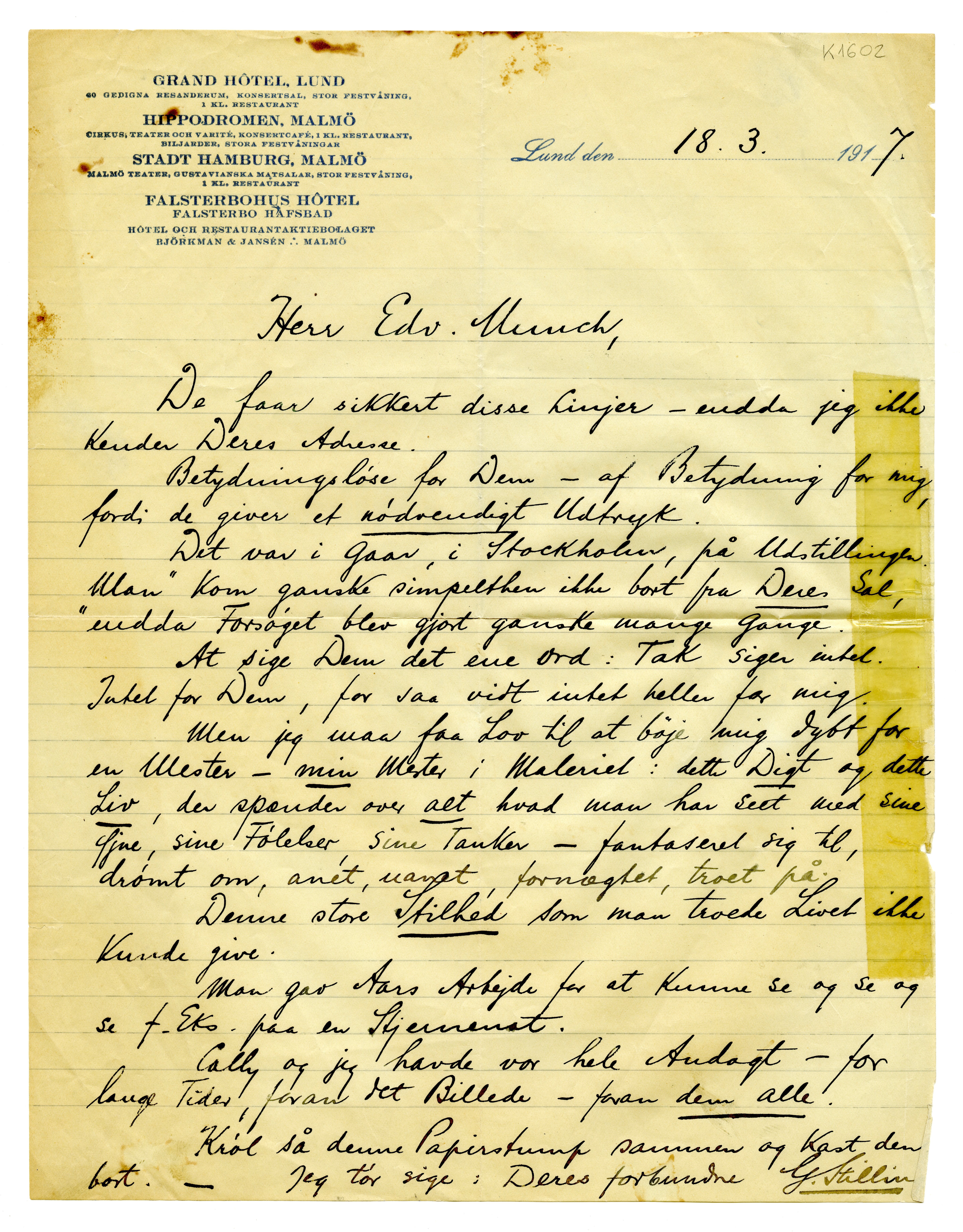 MM K 1602, Munchmuseet. Datert 18.03.1917. Brev fra G. Stilling.