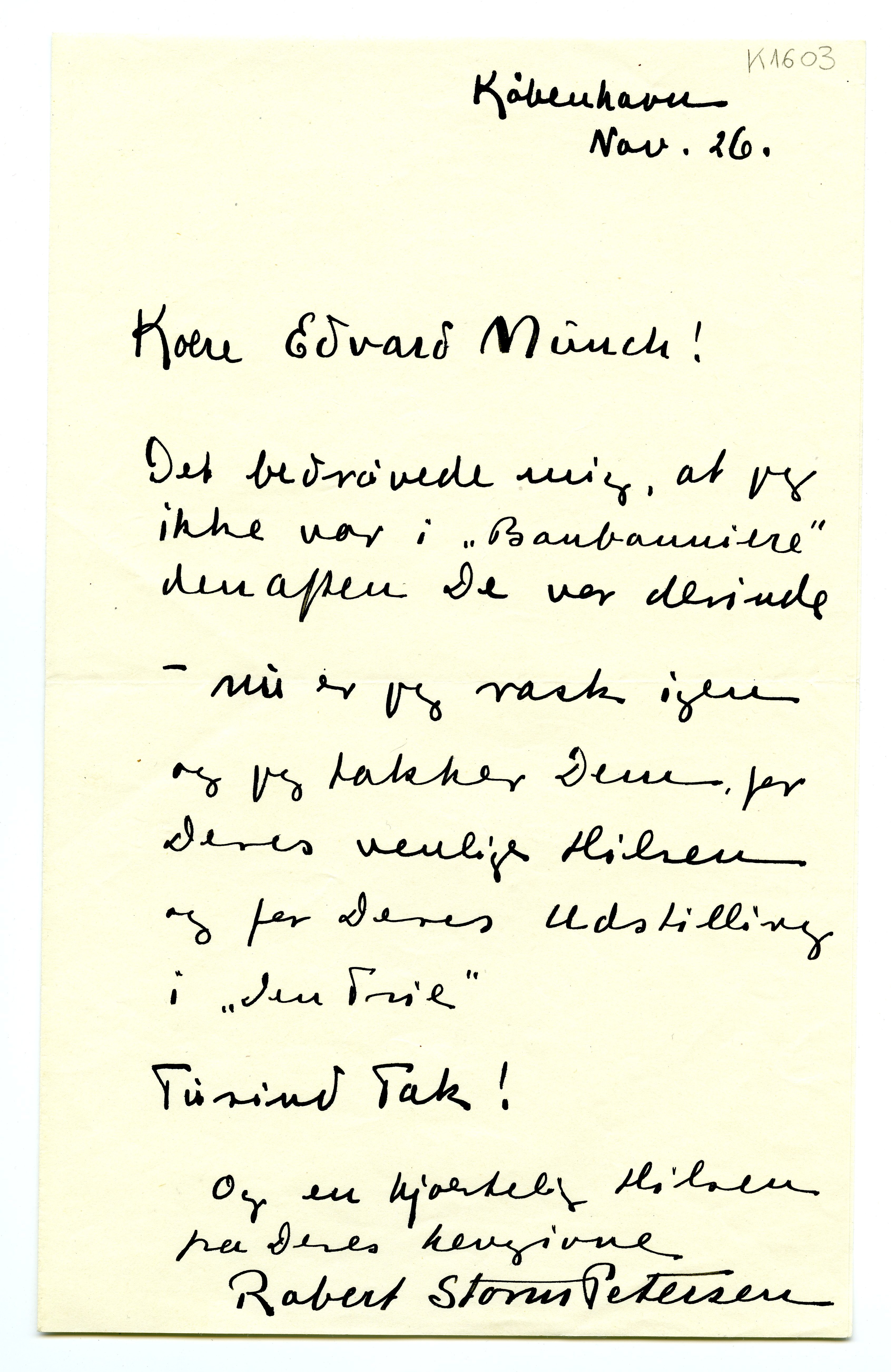 MM K 1603, Munchmuseet. Datert [??].11.1926. Brev fra Robert Storm Petersen.