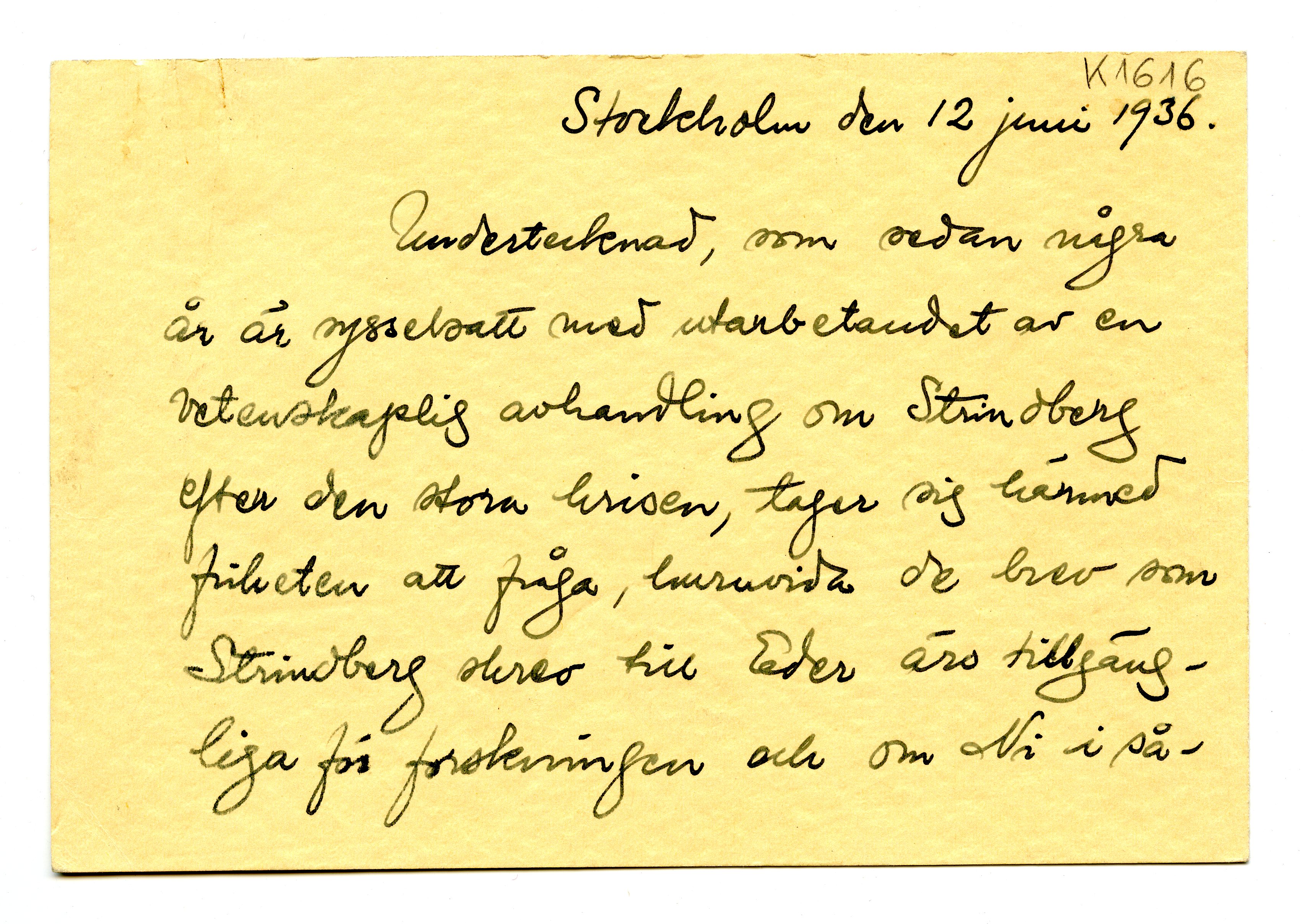 MM K 1616, Munchmuseet. Datert 12.06.1936. Brev fra Ragnar Andersson.