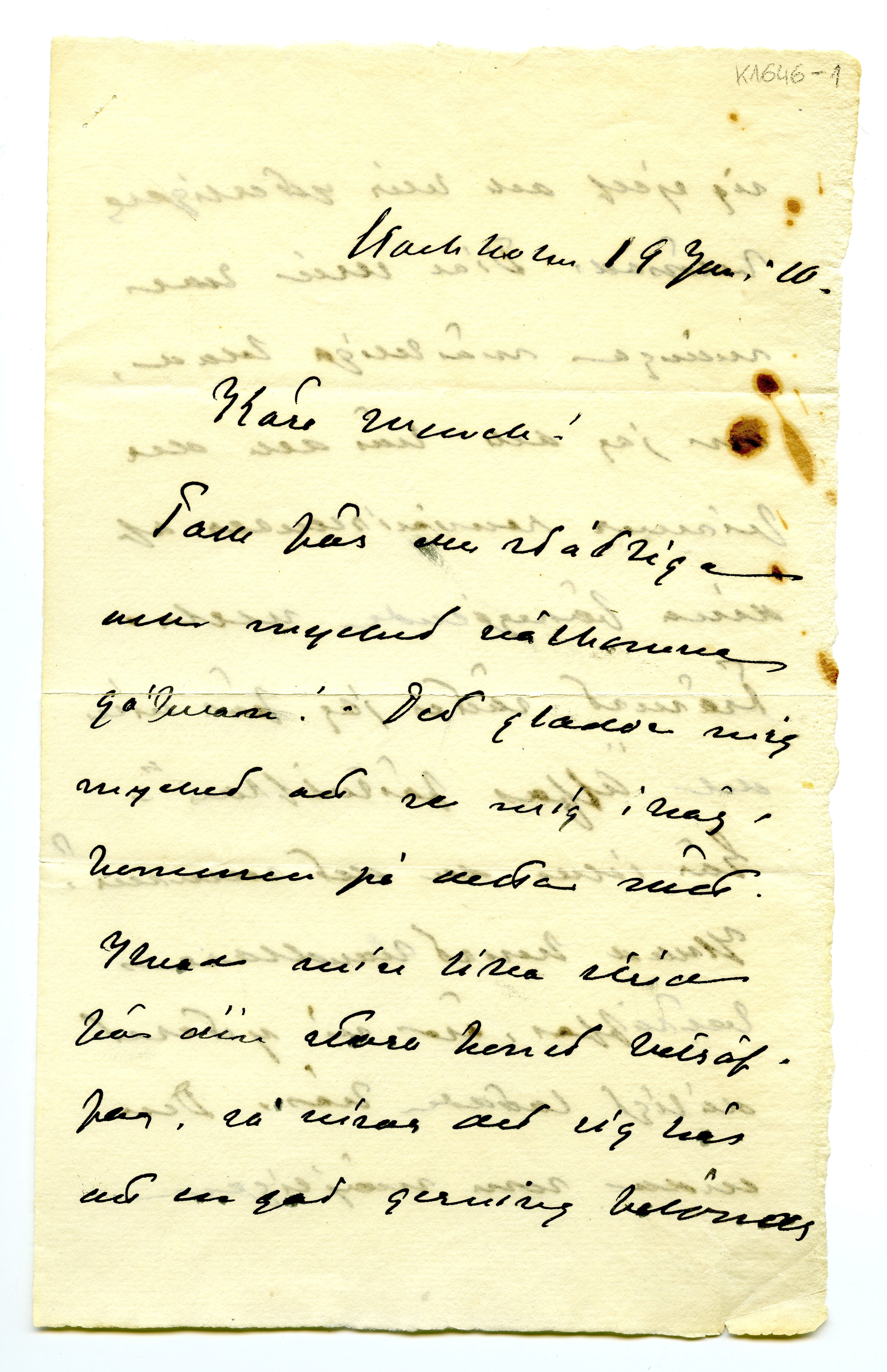 MM K 1646, Munchmuseet. Datert 19.06.1910. Brev fra Tor Hedberg.