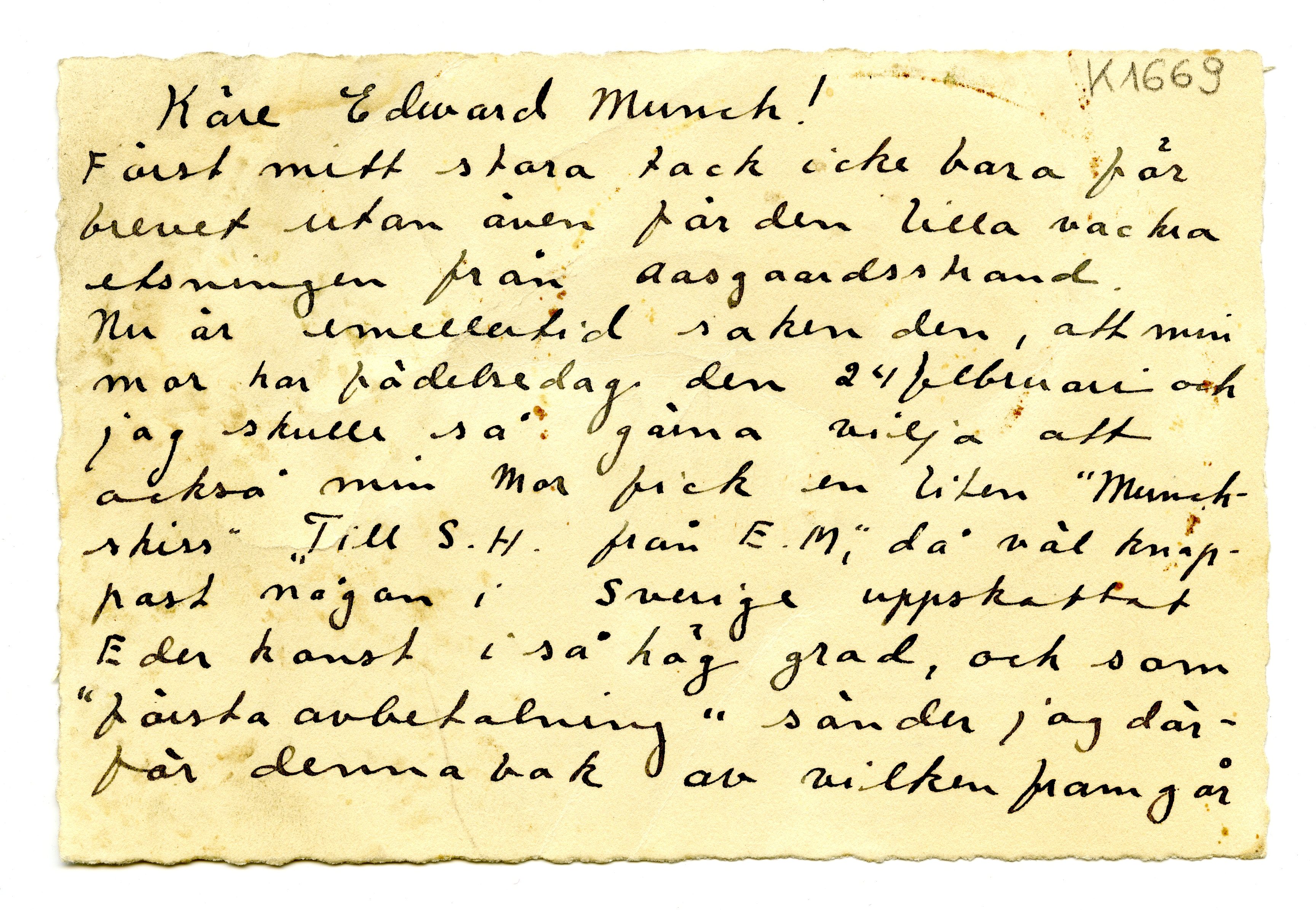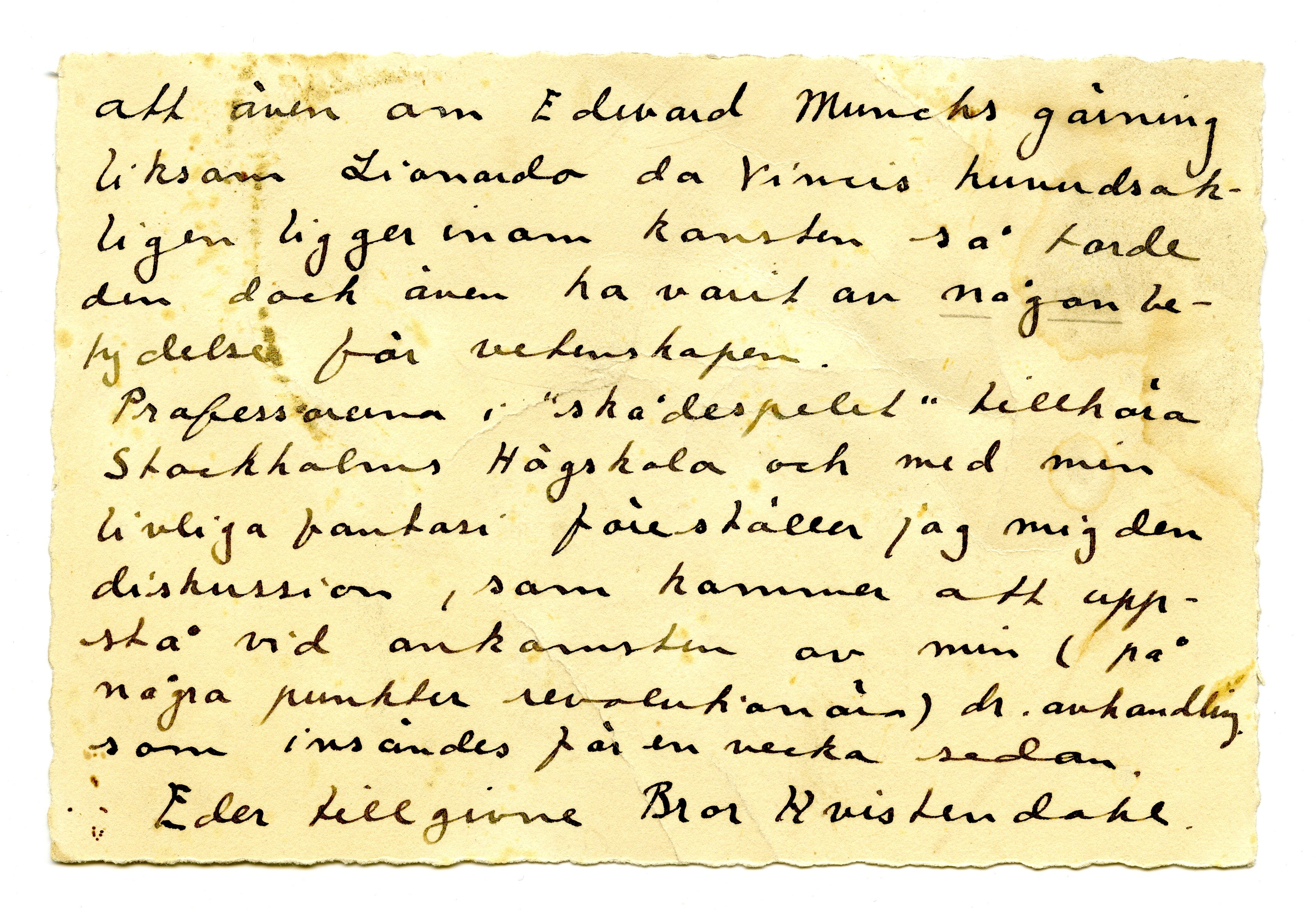 MM K 1669, Munchmuseet. Ikke datert. Brev fra Bror Hvistendahl.