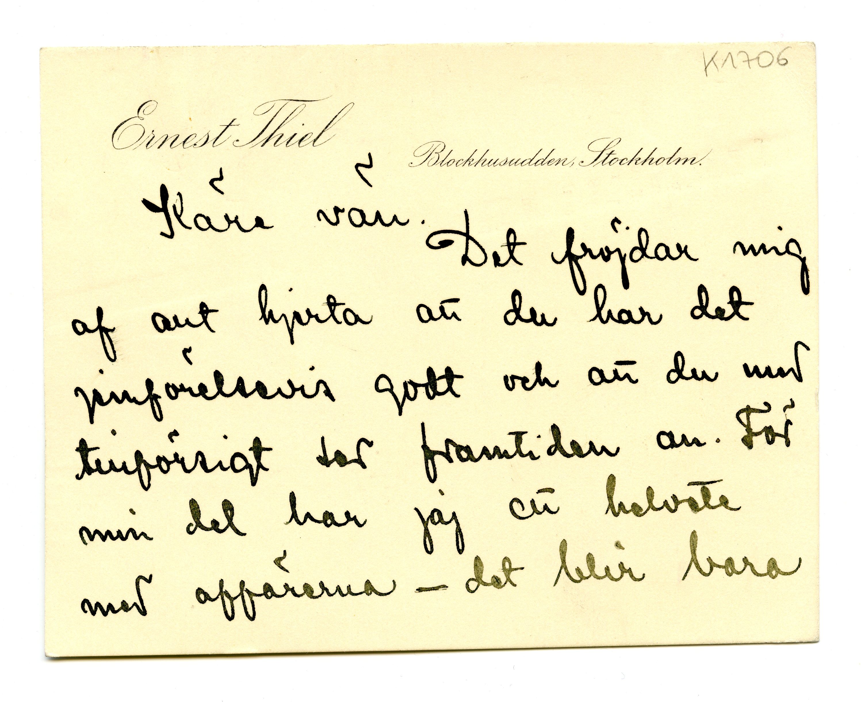 MM K 1706, Munchmuseet. Ikke datert. Brev fra Ernest Thiel.