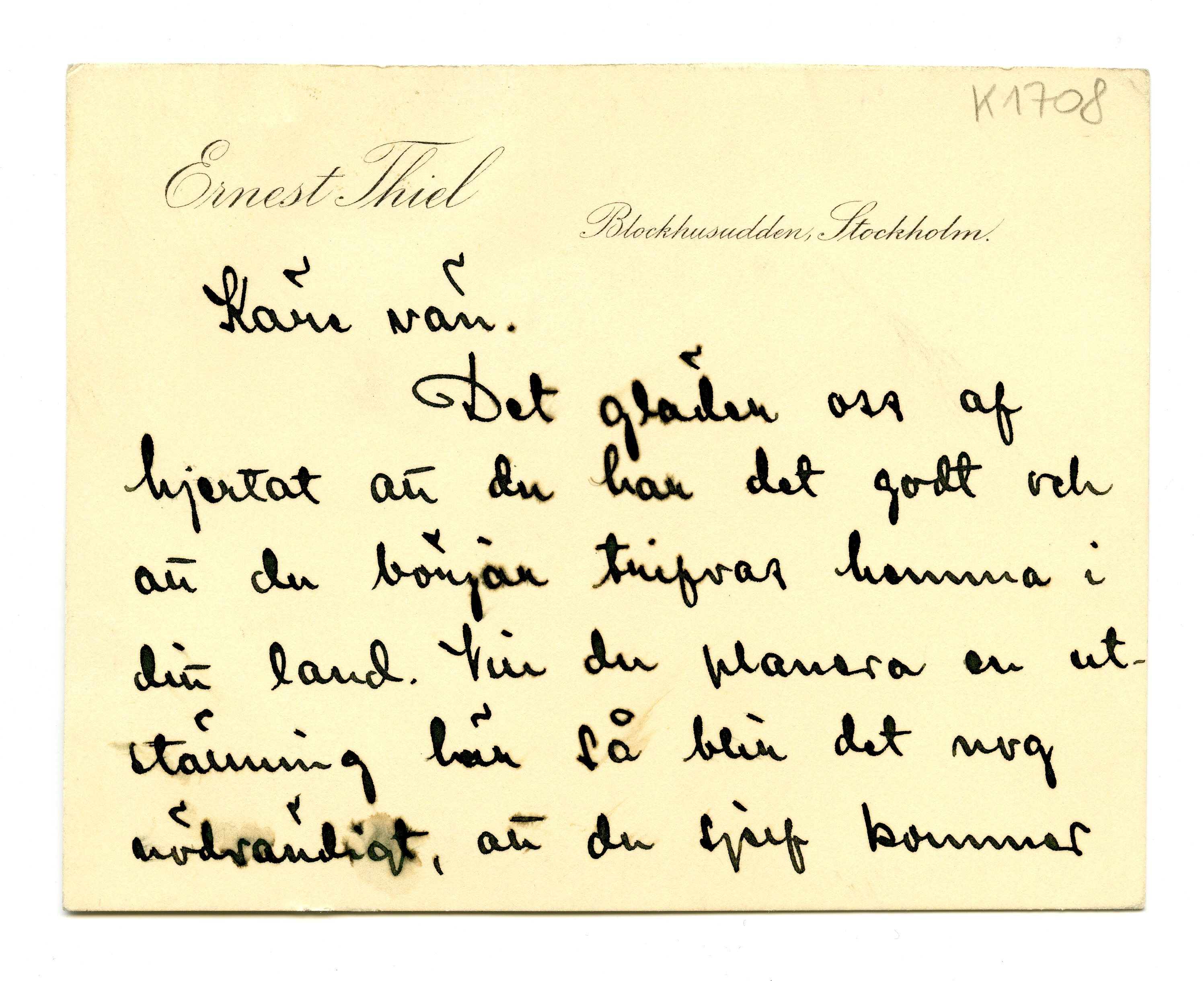 MM K 1708, Munchmuseet. Ikke datert. Brev fra Ernest Thiel.