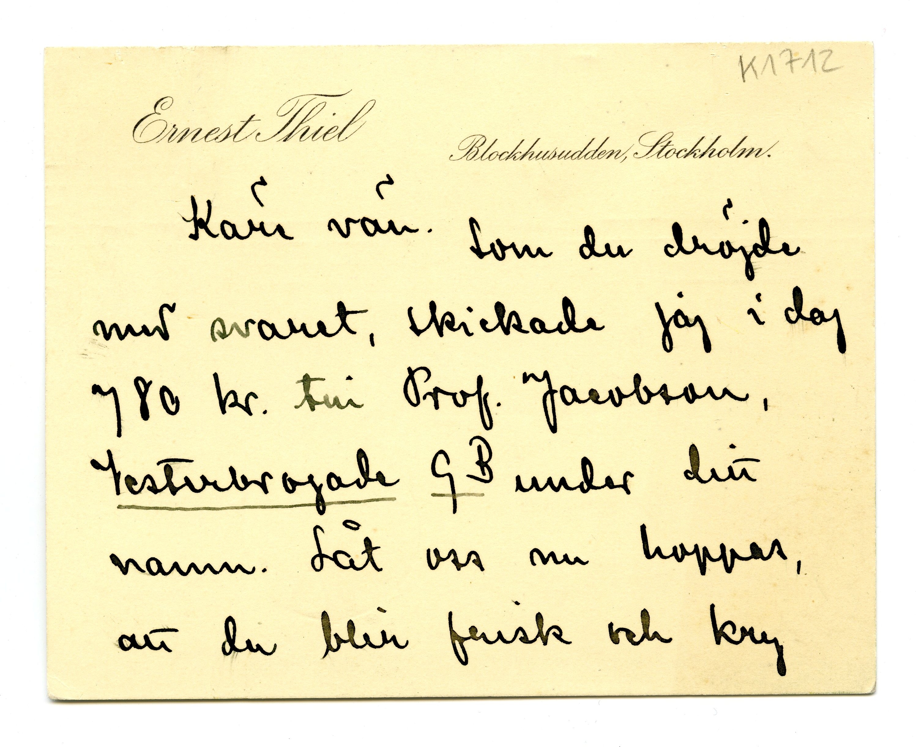 MM K 1712, Munchmuseet. Ikke datert. Brev fra Ernest Thiel.