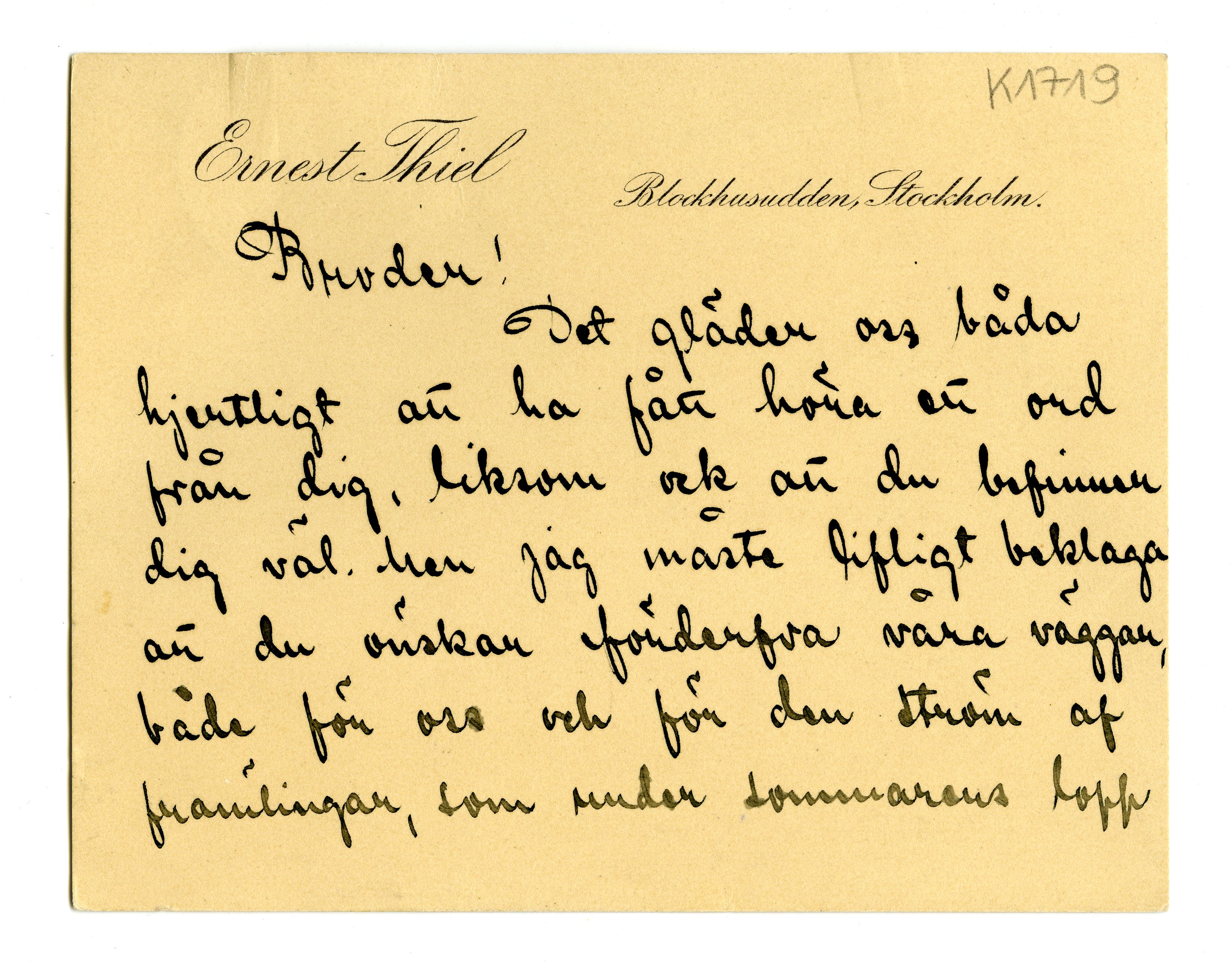 MM K 1719, Munchmuseet. Ikke datert. Brev fra Ernest Thiel.