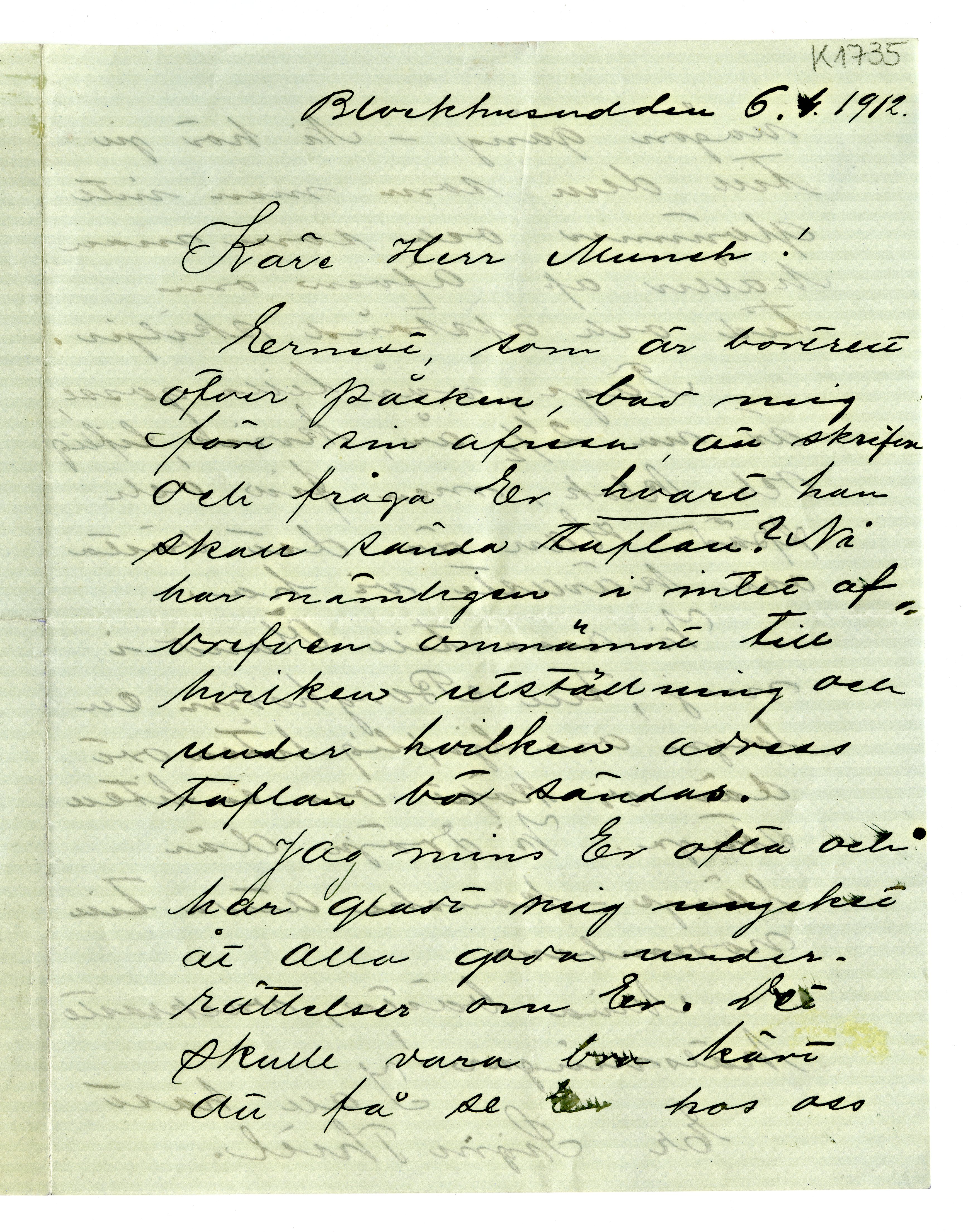 MM K 1735, Munchmuseet. Datert 06.04.1912. Brev fra Signe Thiel.