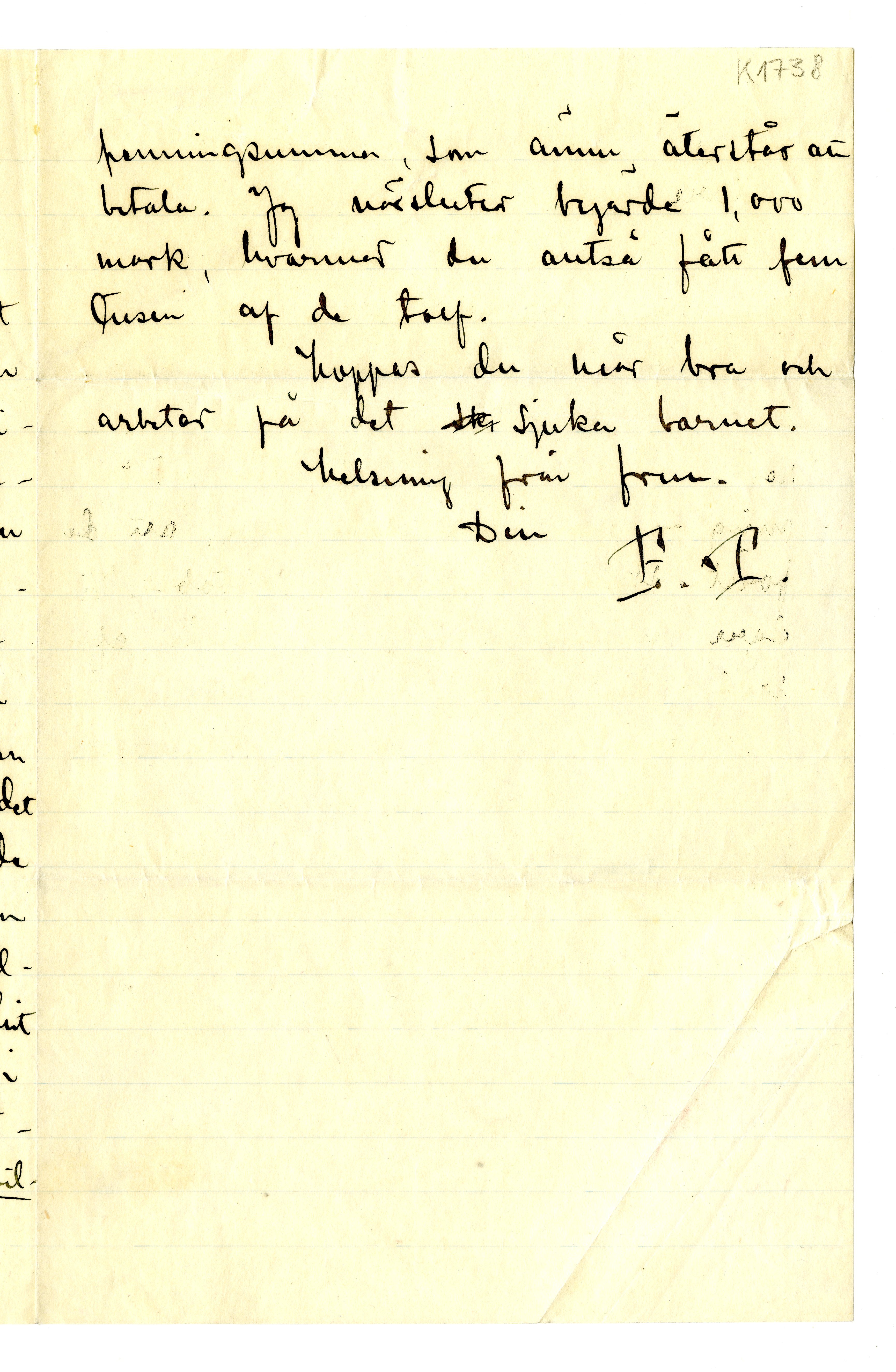 MM K 1738, Munchmuseet. Ikke datert. Brev fra Ernest Thiel.
