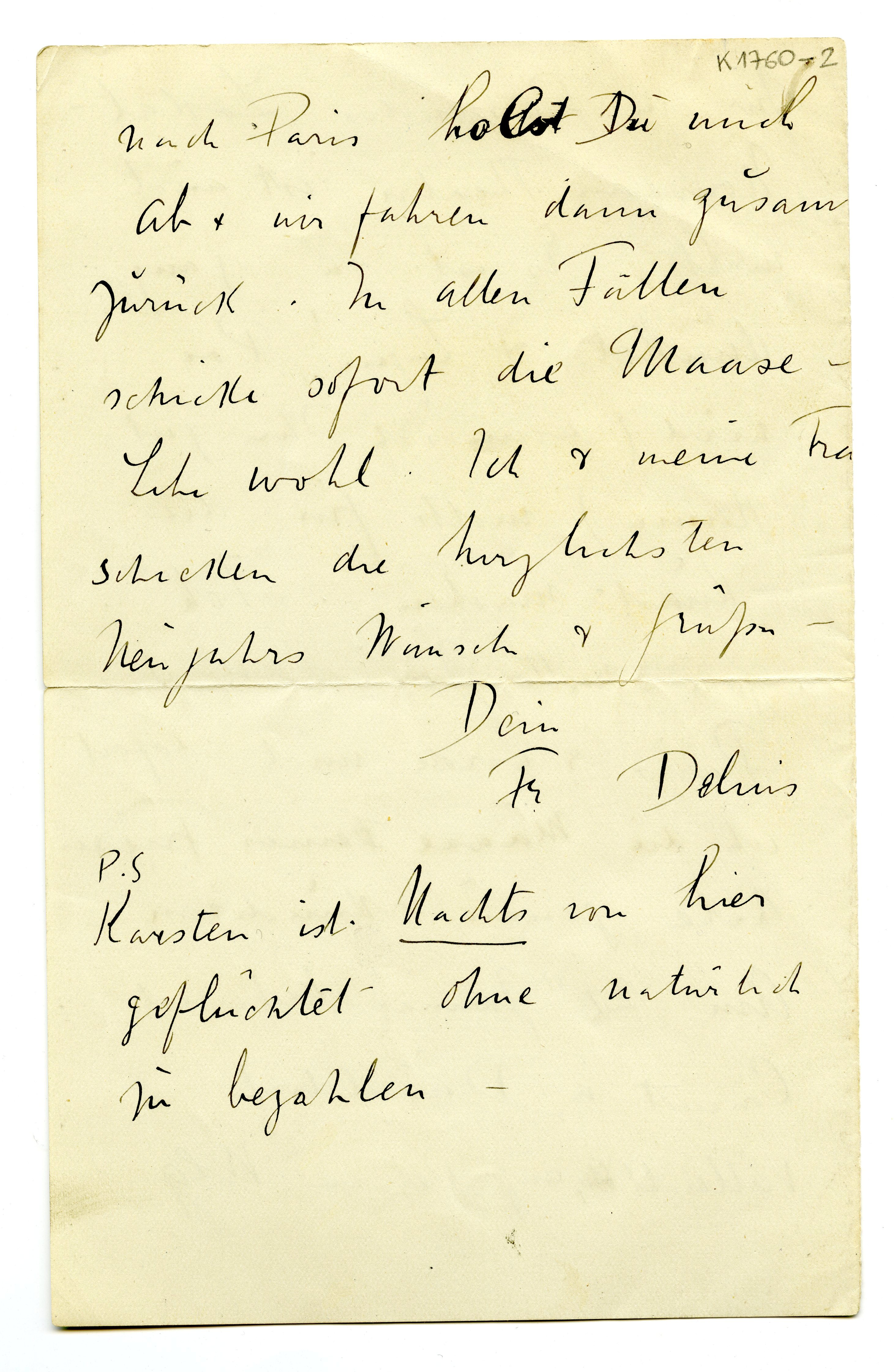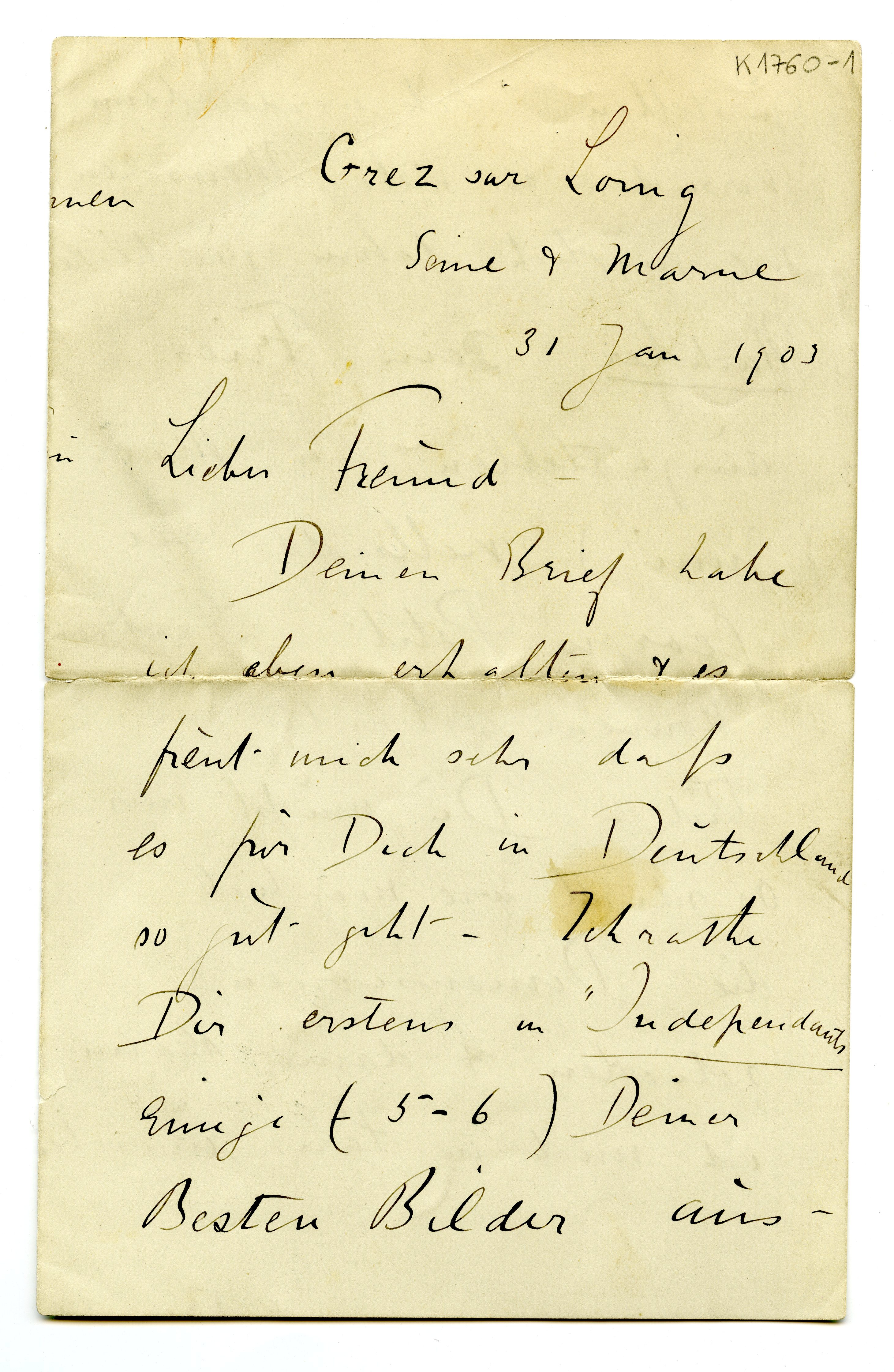 MM K 1760, Munchmuseet. Datert 31.01.1903. Brev fra Frederick Delius.