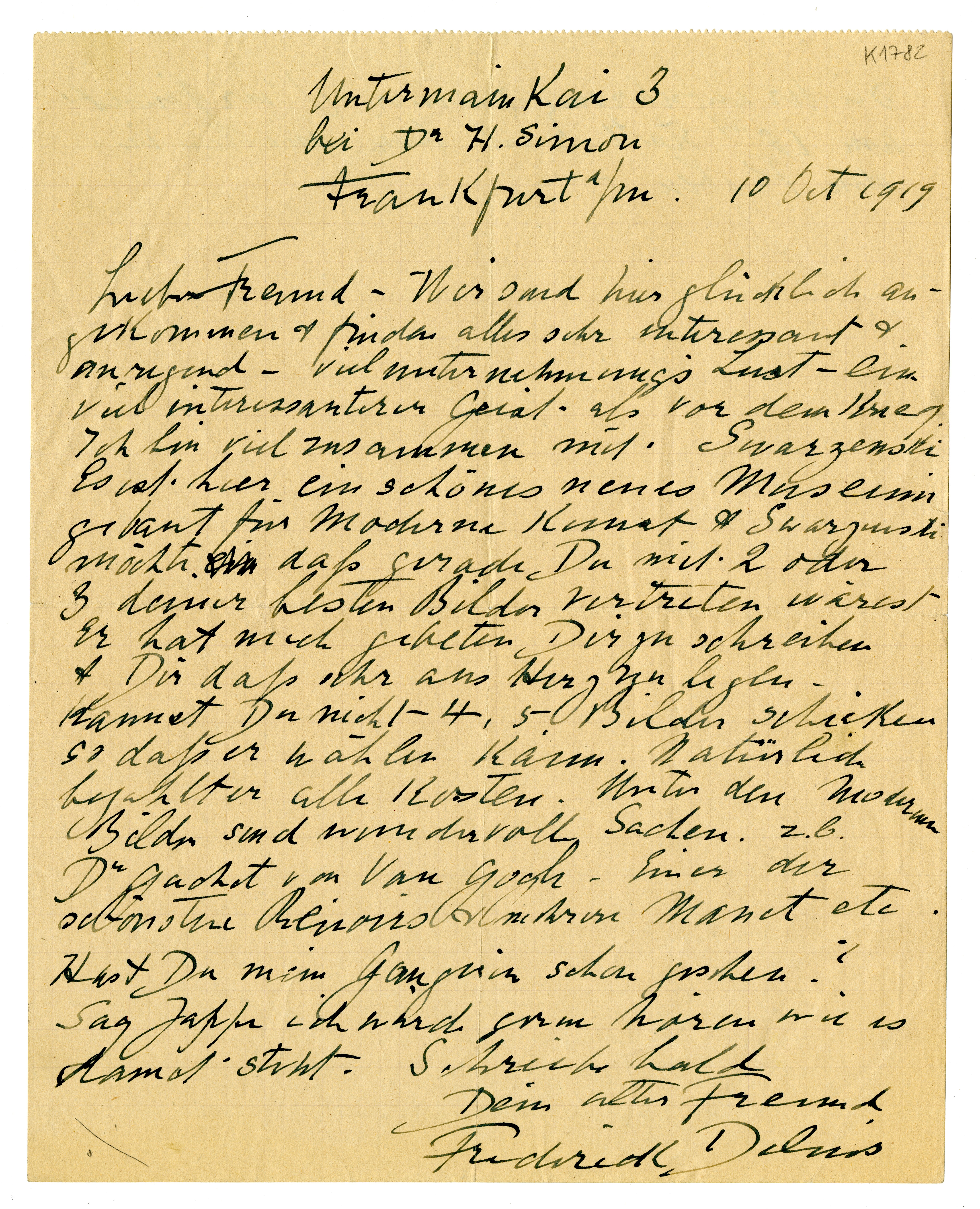 MM K 1782, Munchmuseet. Datert 10.10.1919. Brev fra Frederick Delius.