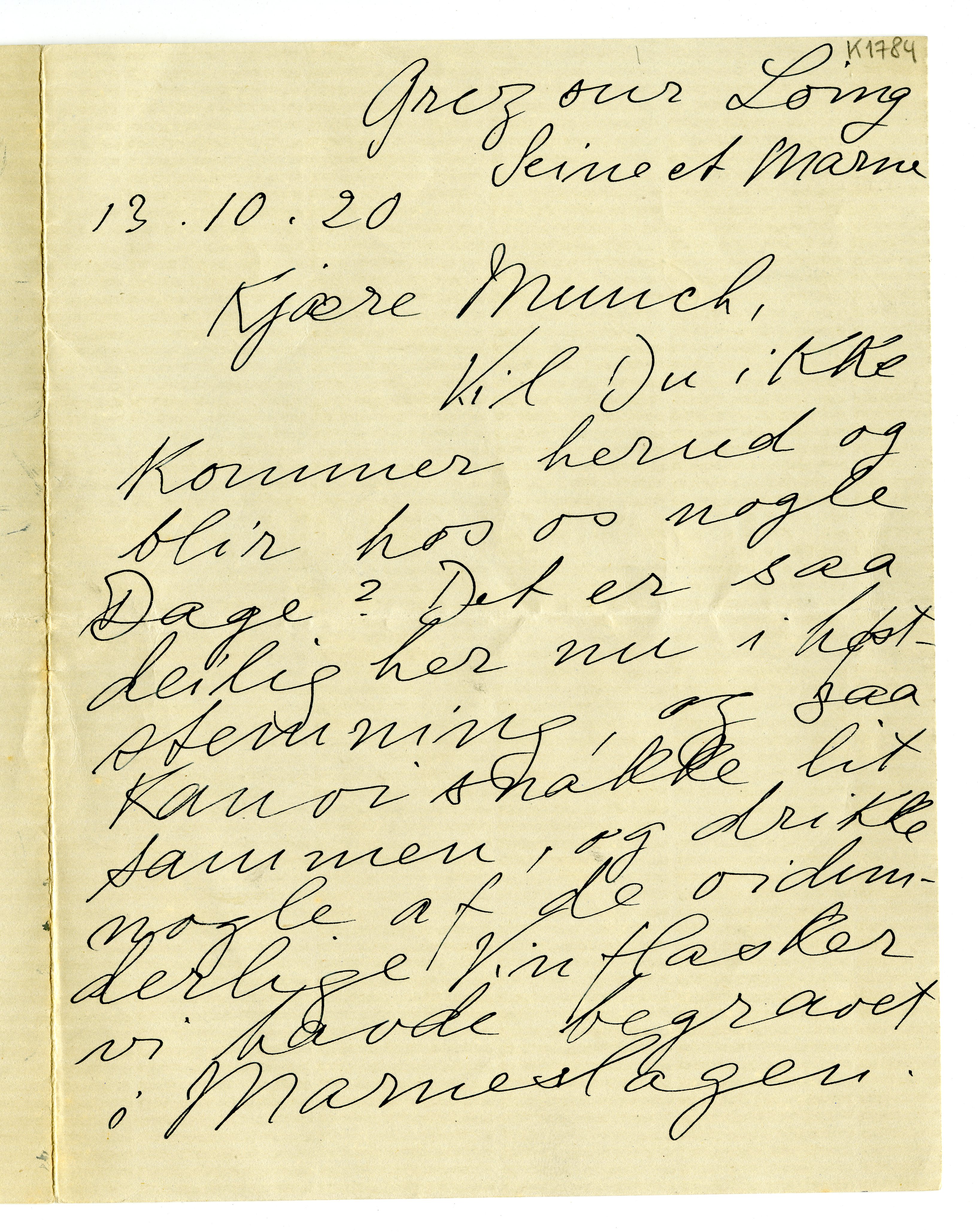 MM K 1784, Munchmuseet. Datert 13.10.1920. Brev fra Frederick Delius.