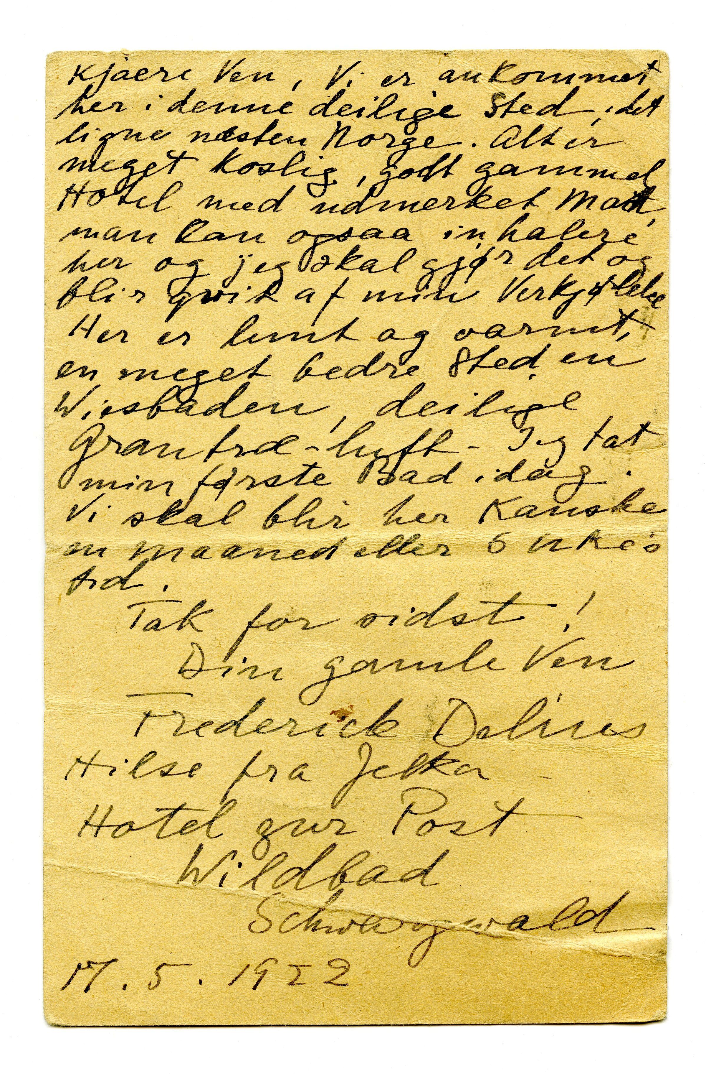 MM K 1785, Munchmuseet. Datert 17.05.1922. Brev fra Frederick Delius.