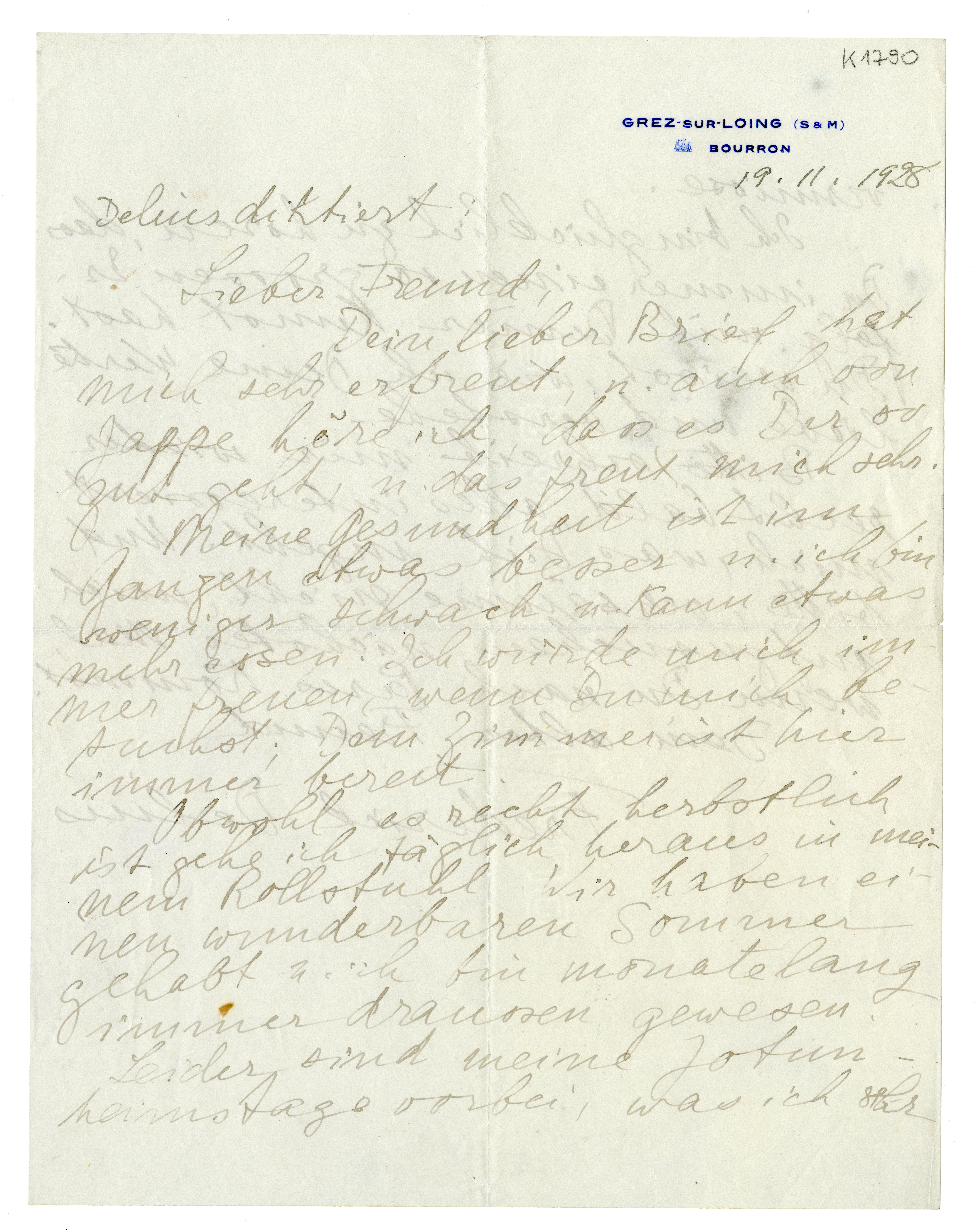 MM K 1790, Munchmuseet. Datert 19.11.1928. Brev fra Jelka Delius.