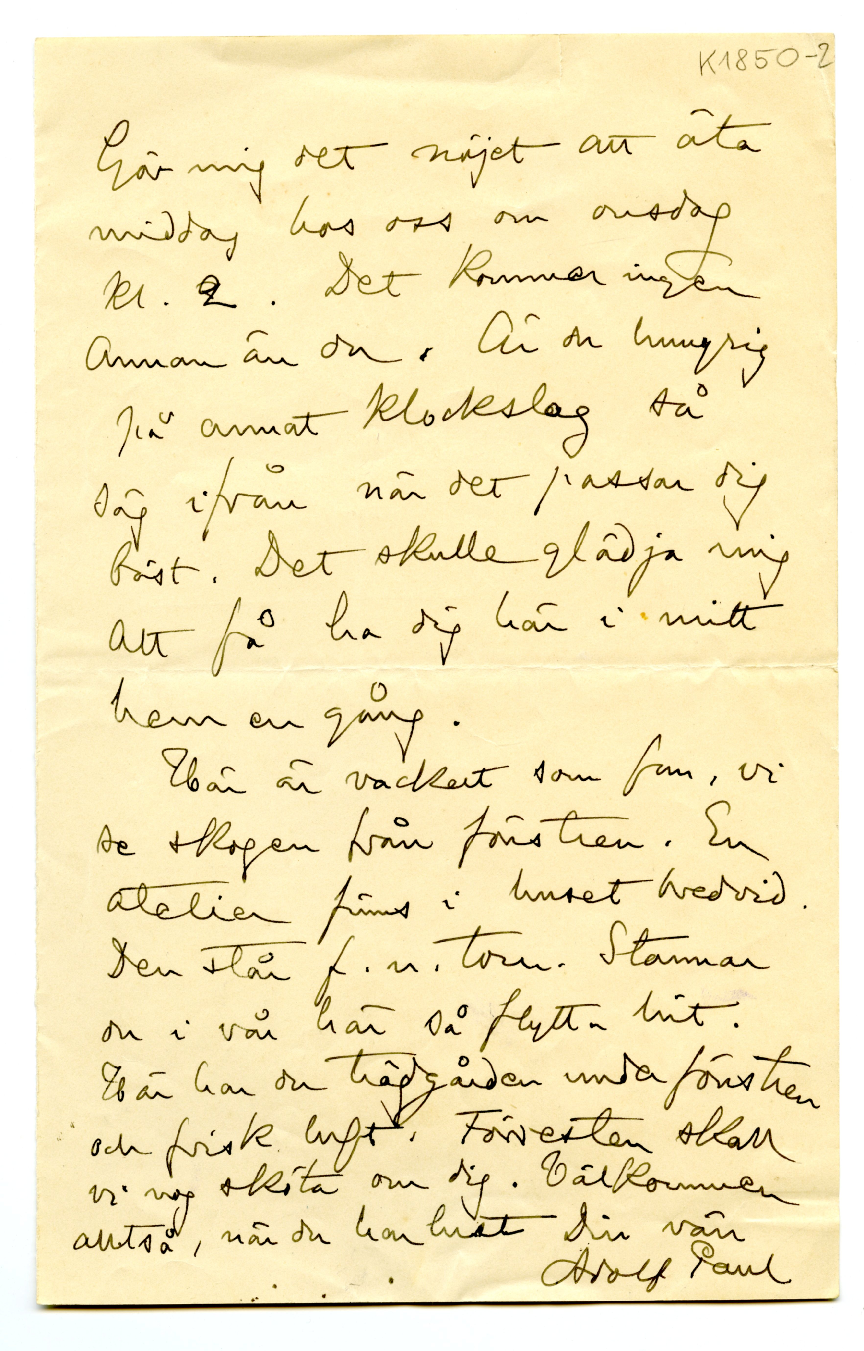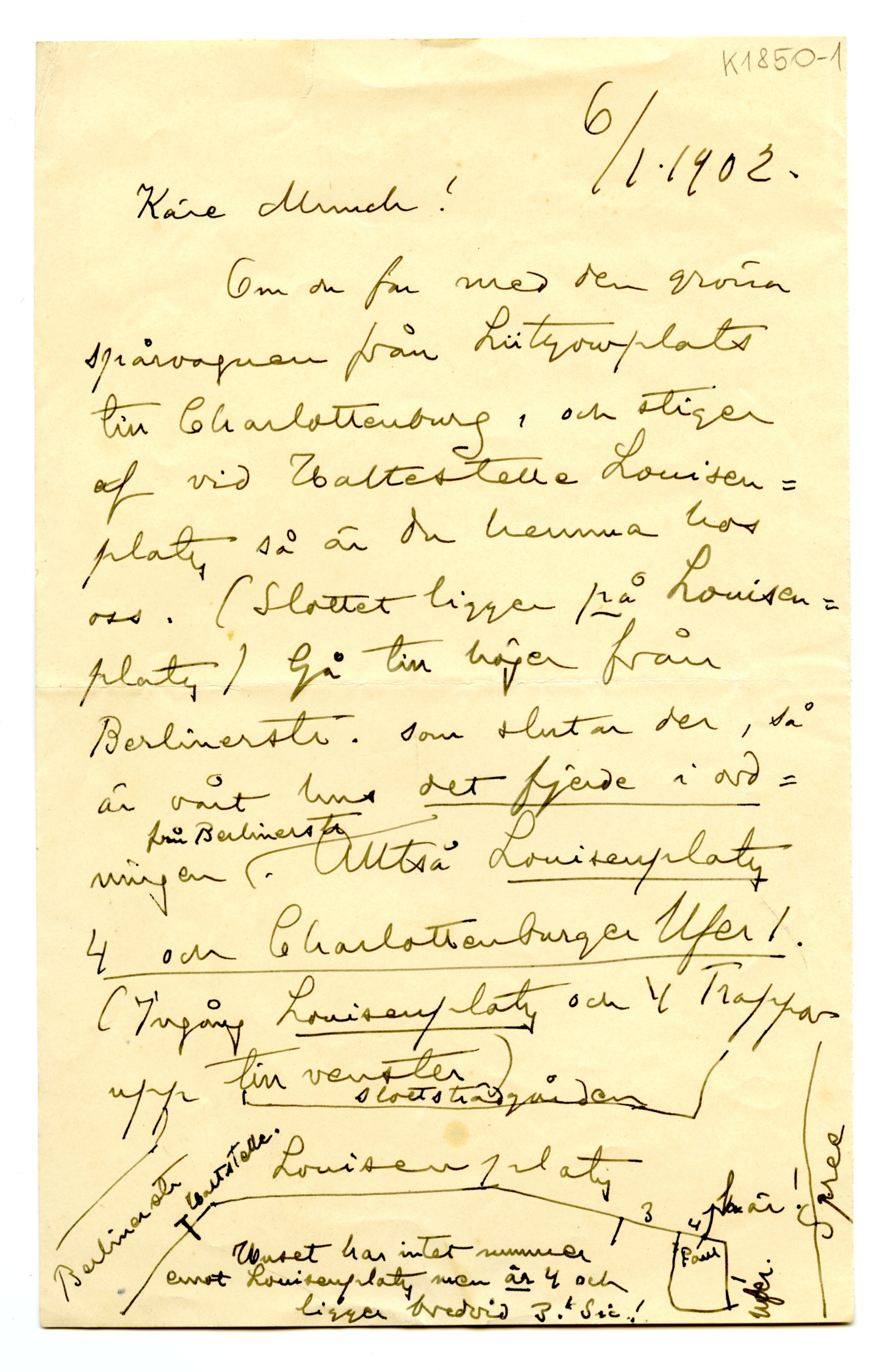 MM K 1850, Munchmuseet. Datert 06.01.1902. Brev fra Adolf Paul.