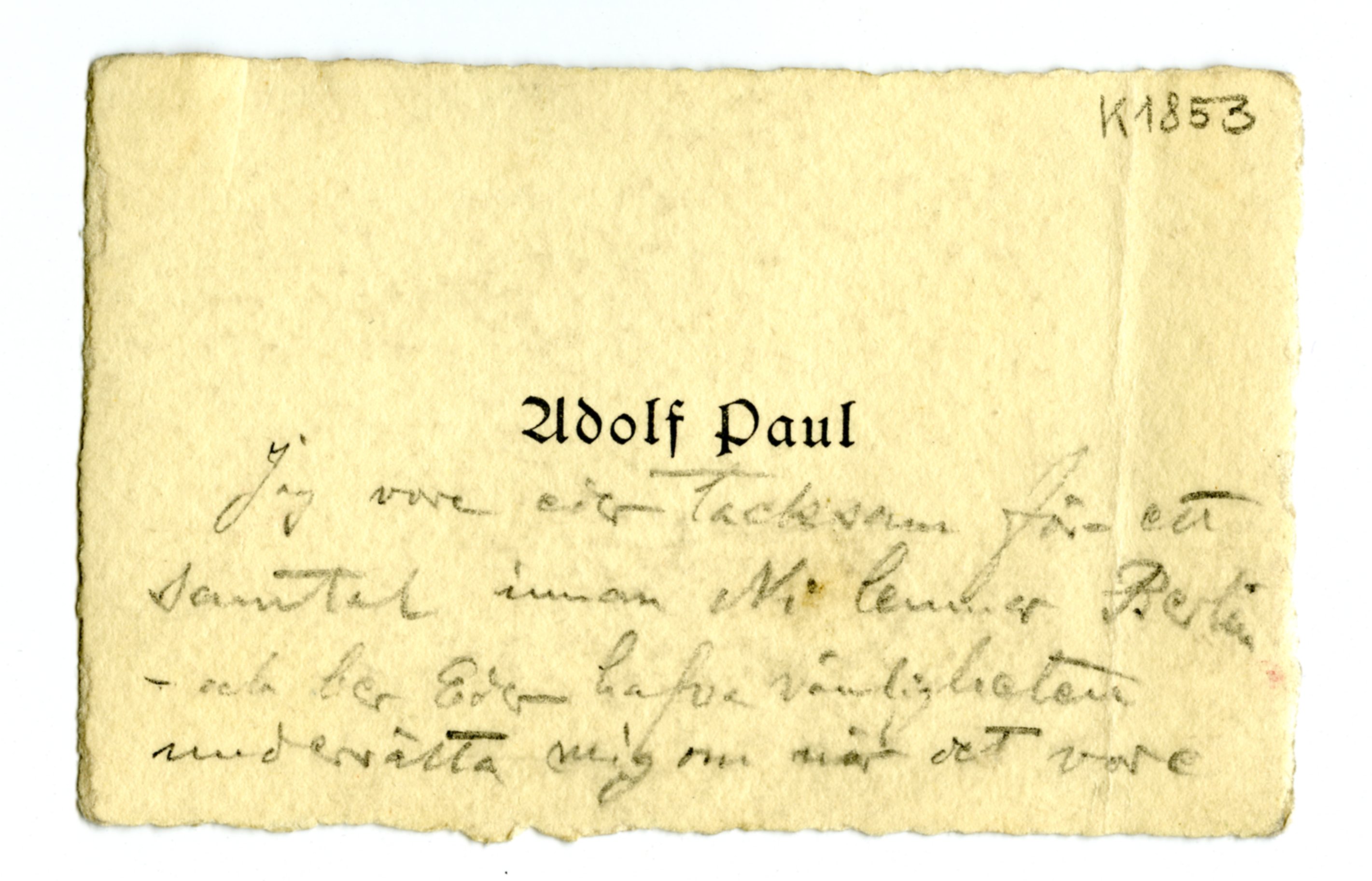MM K 1853, Munchmuseet. Ikke datert. Brev fra Adolf Paul.