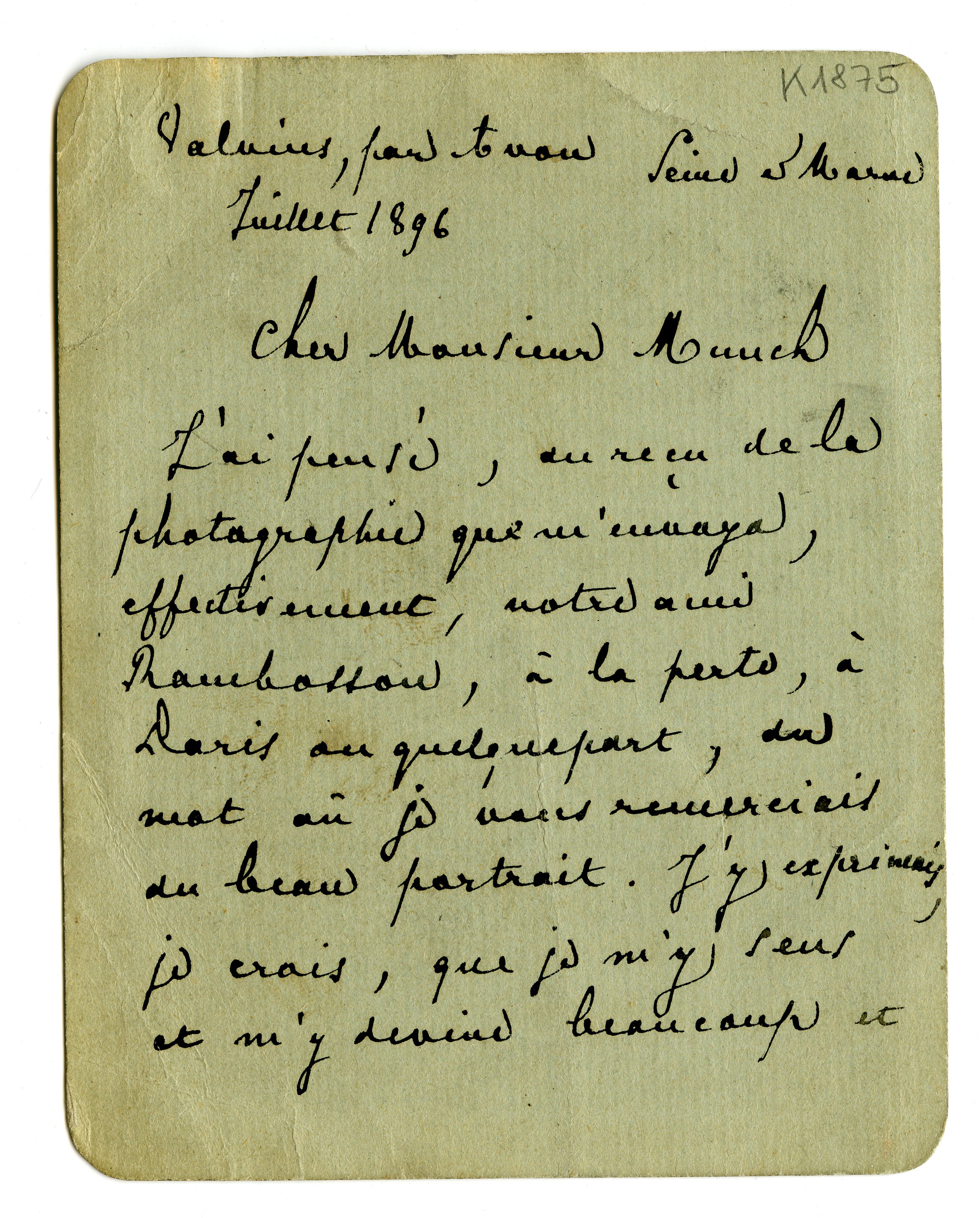 MM K 1875, Munchmuseet. Datert [??].07.189[7]. Brev fra Stéphane Mallarmé.