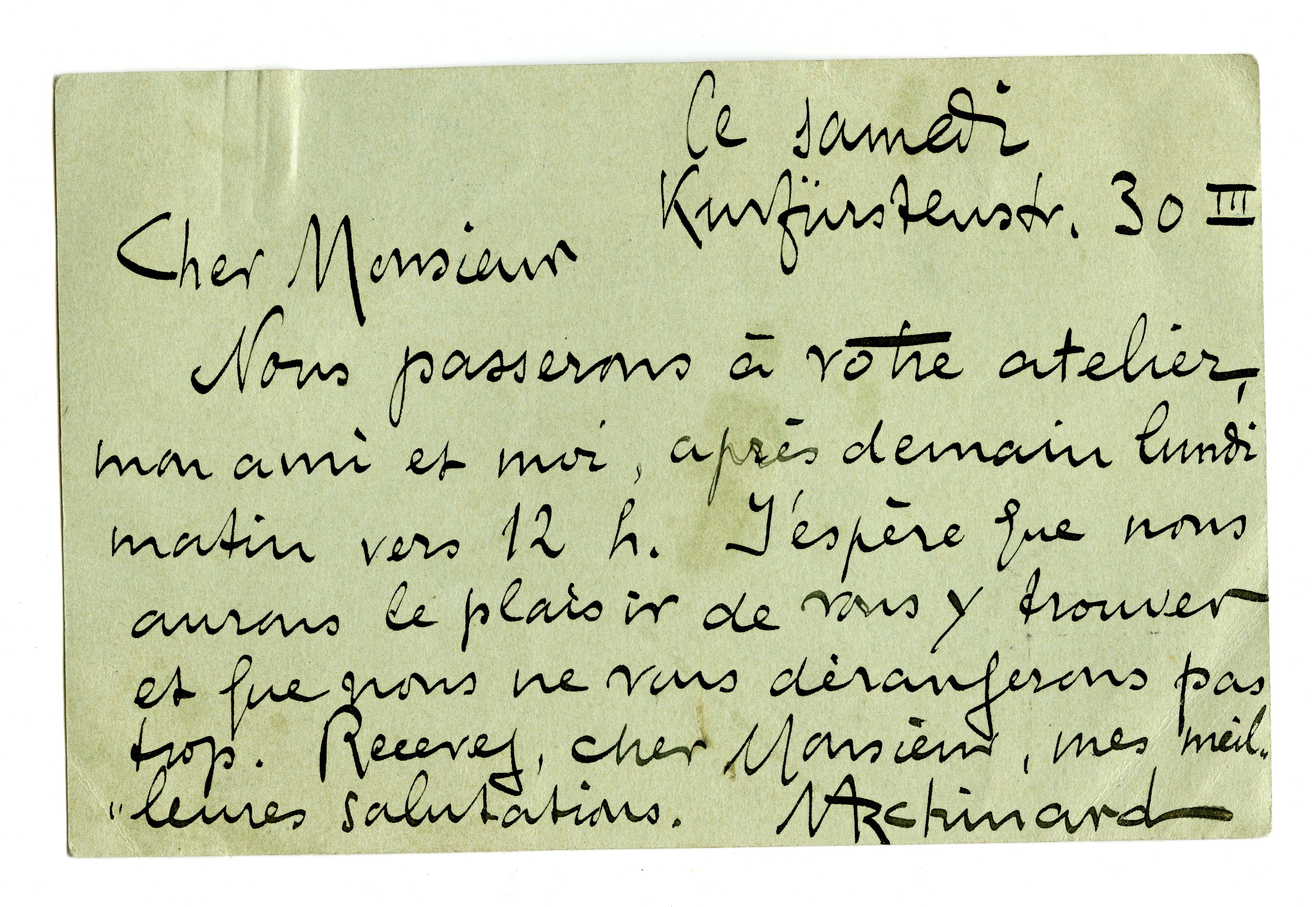 MM K 1895, Munchmuseet. Datert 07.12.1903. Brev fra Marcel Archinard.