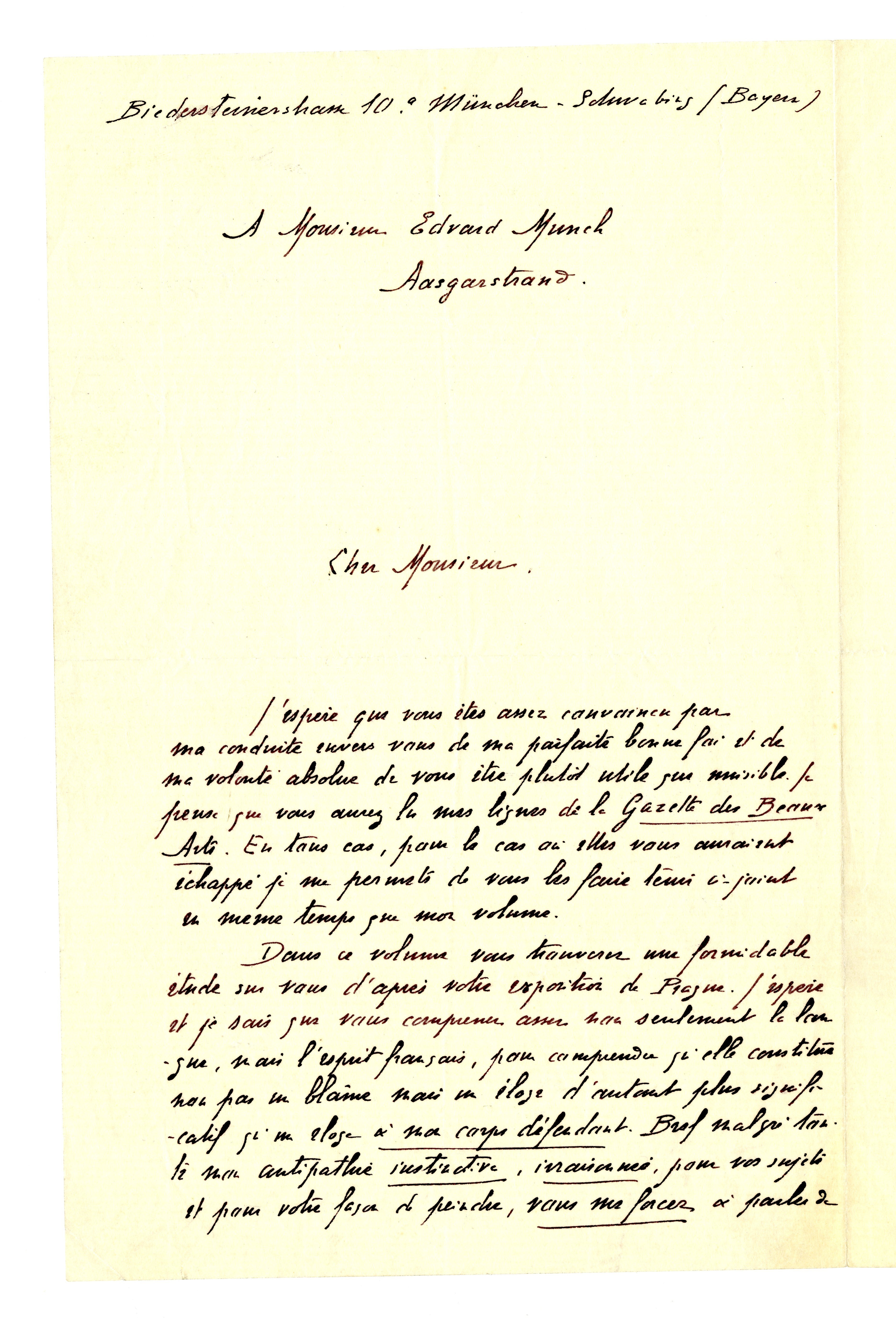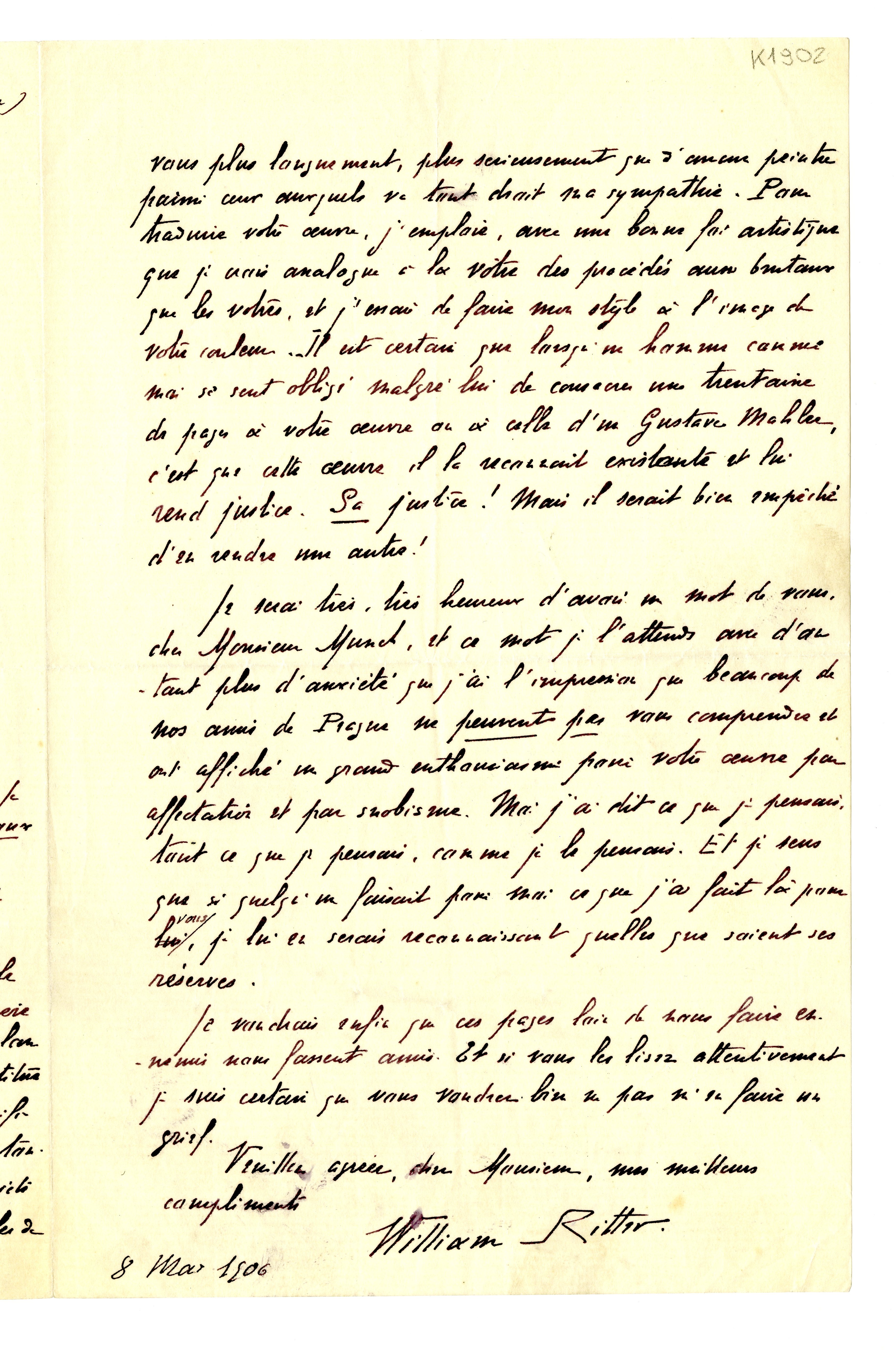 MM K 1902, Munchmuseet. Datert 08.05.1906. Brev fra William Ritter.
