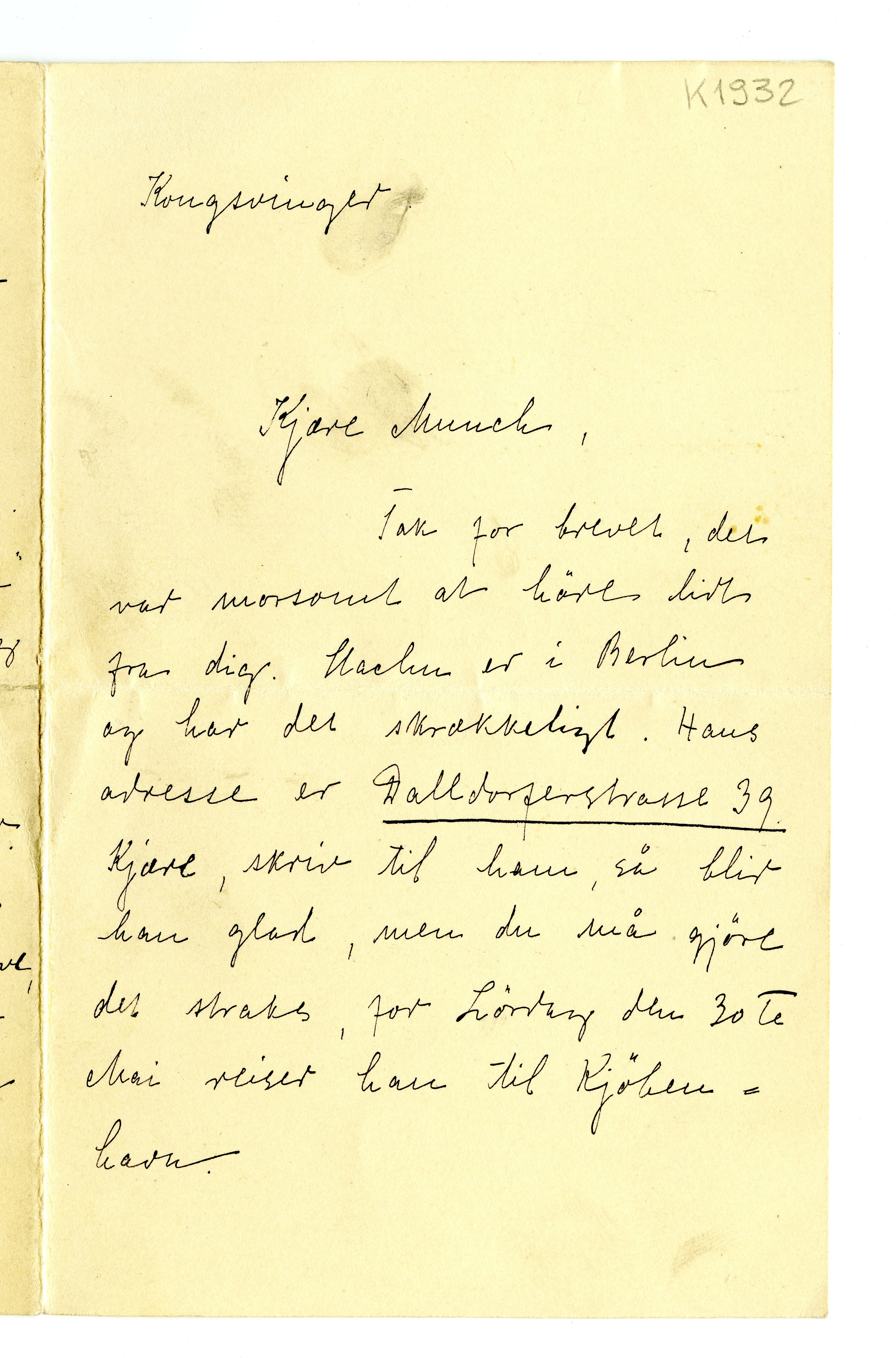 MM K 1932, Munchmuseet. Ikke datert. Brev fra Dagny Przybyszewska.