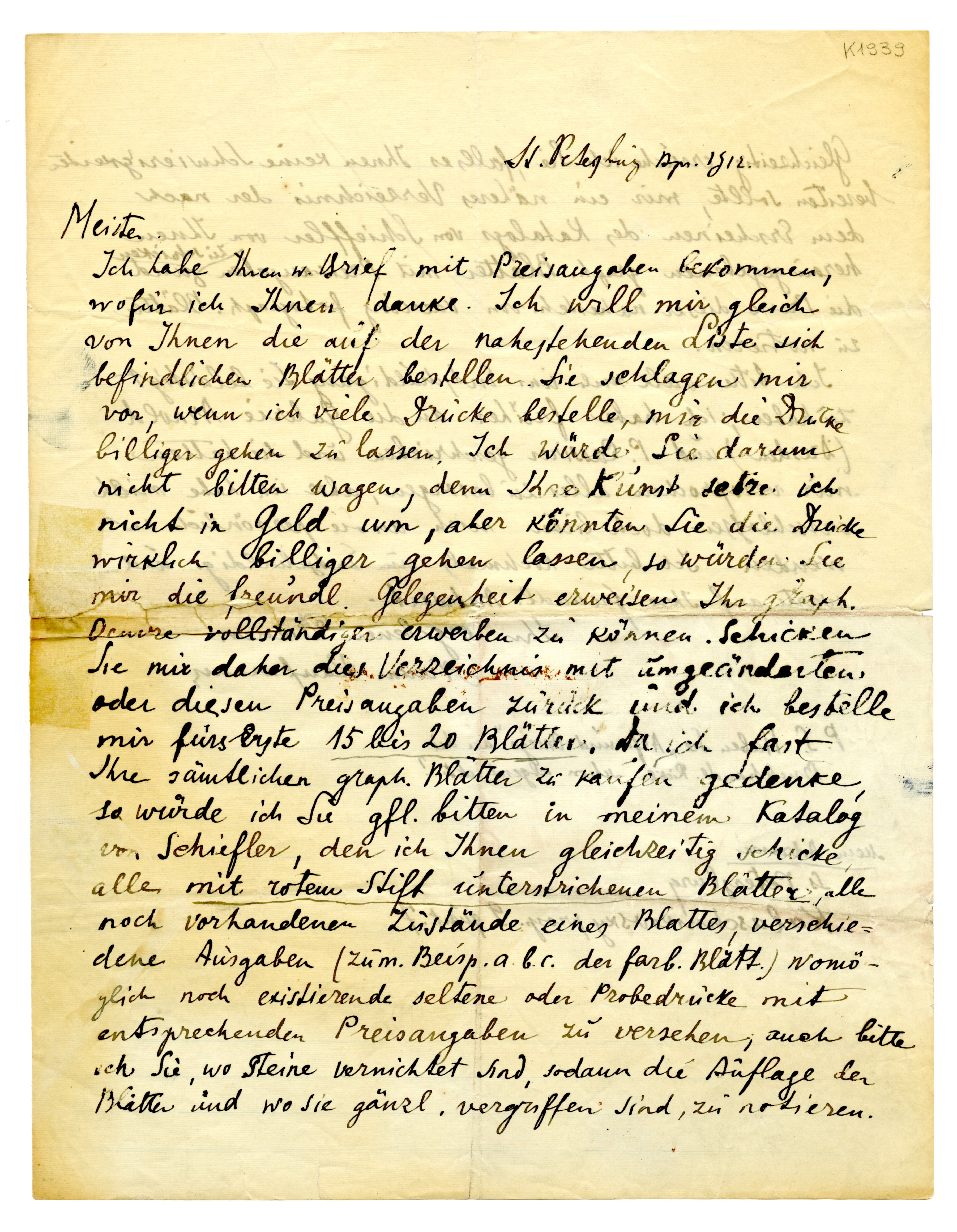 MM K 1939, Munchmuseet. Datert [??].04.1912. Brev fra Naum Kaufmann.