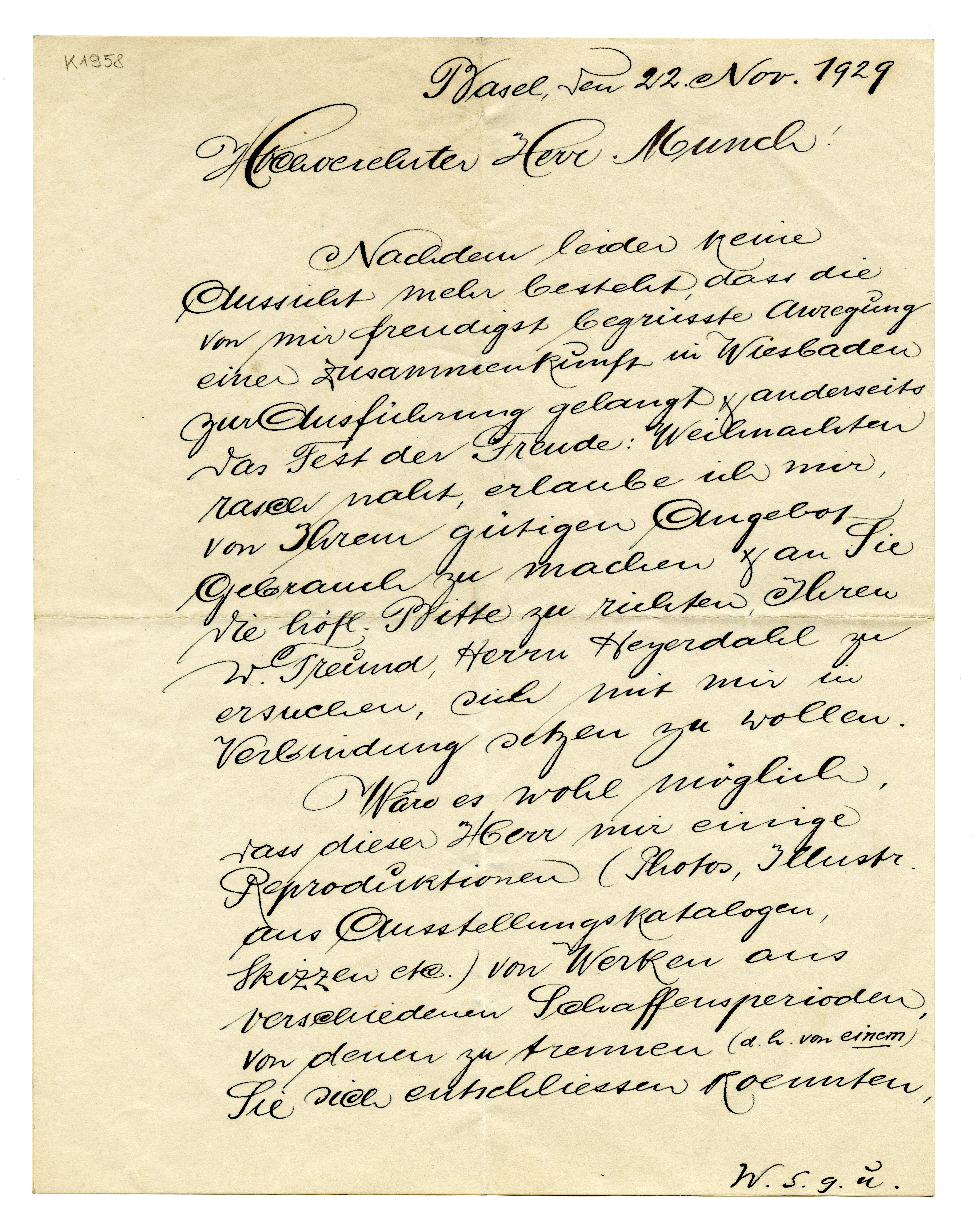 MM K 1958, Munchmuseet. Datert 22.11.1929. Brev fra E. Leuthold-Resch.