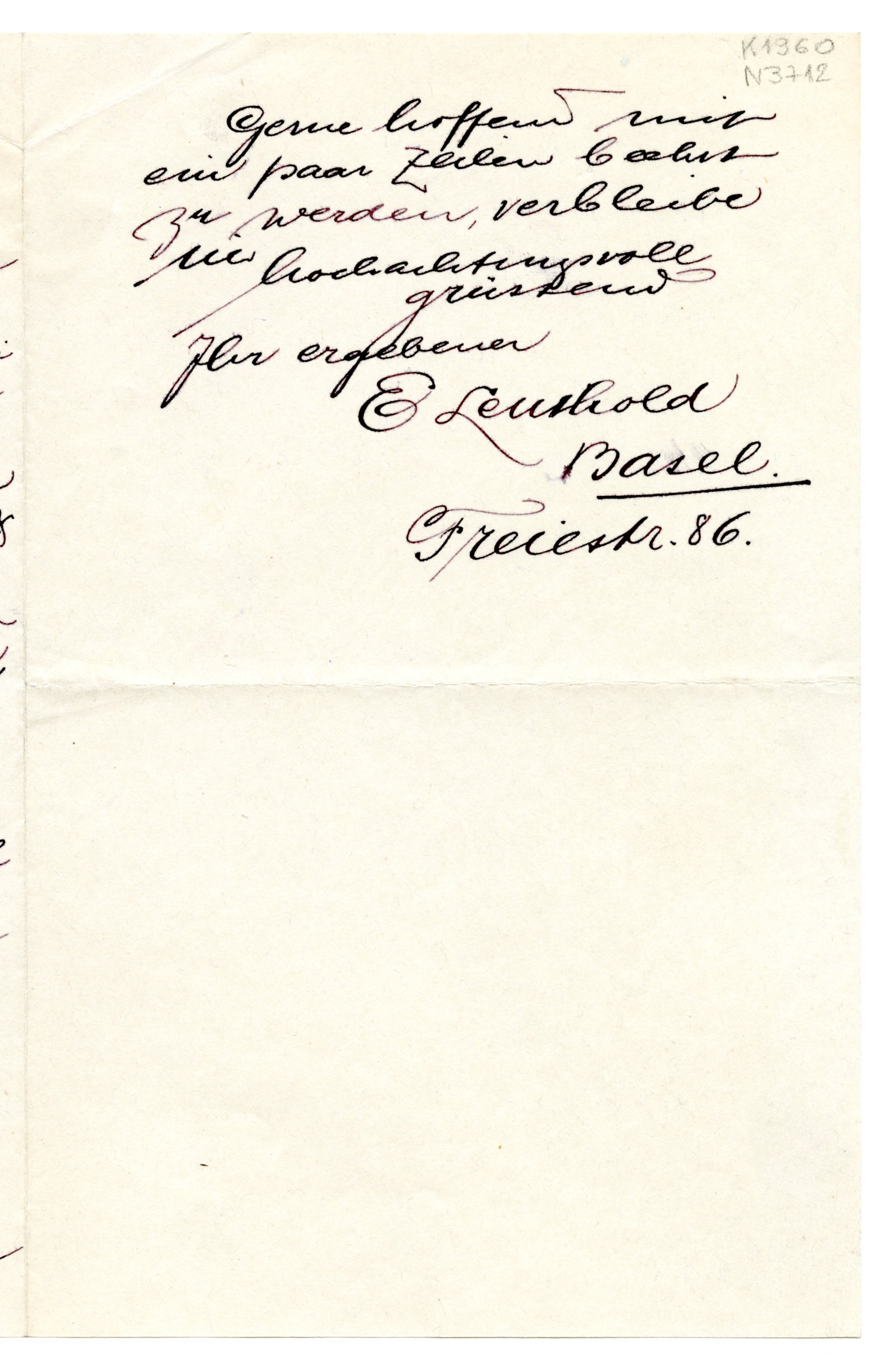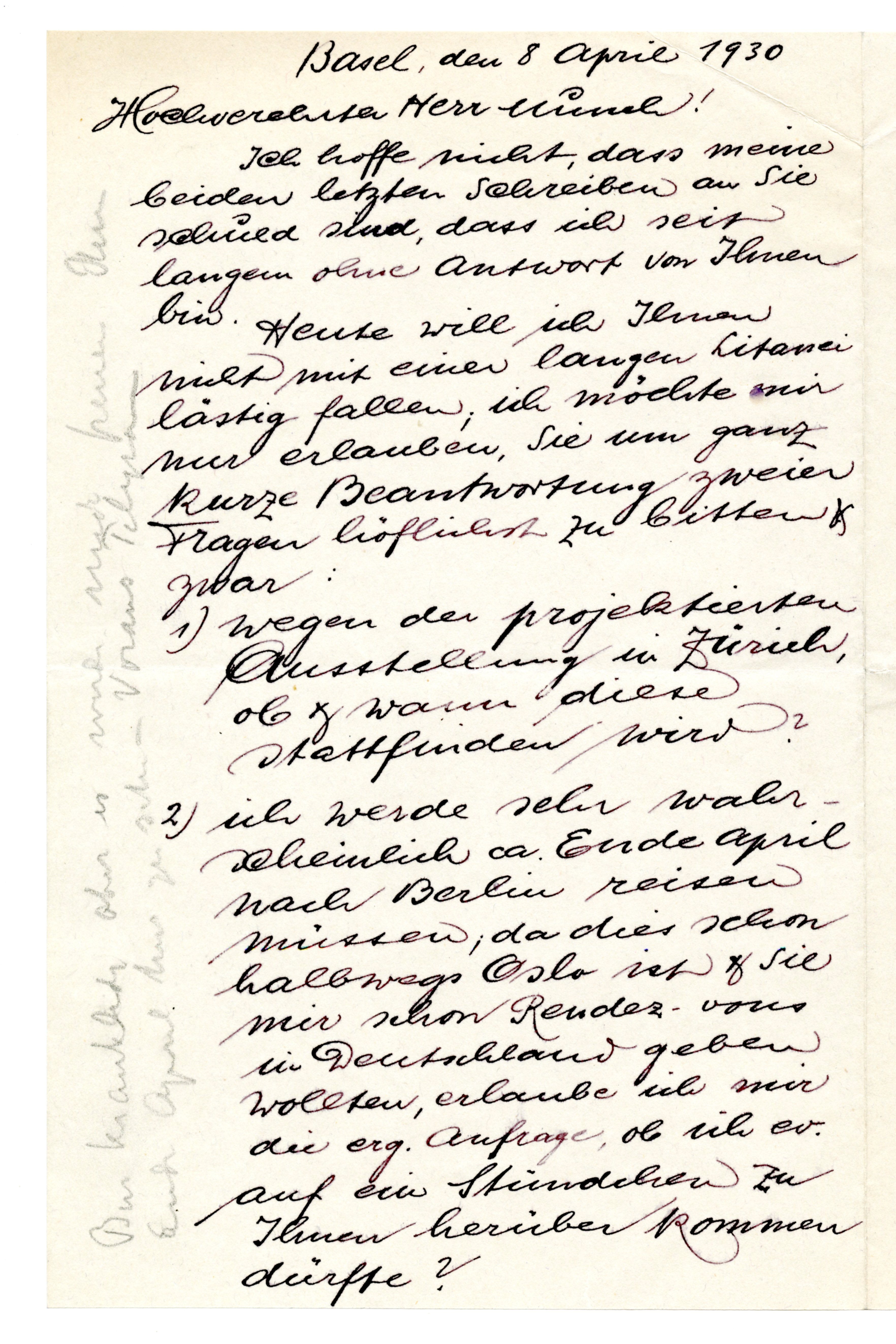 MM K 1960, Munchmuseet. Datert 08.04.1930. Brev fra E. Leuthold-Resch.