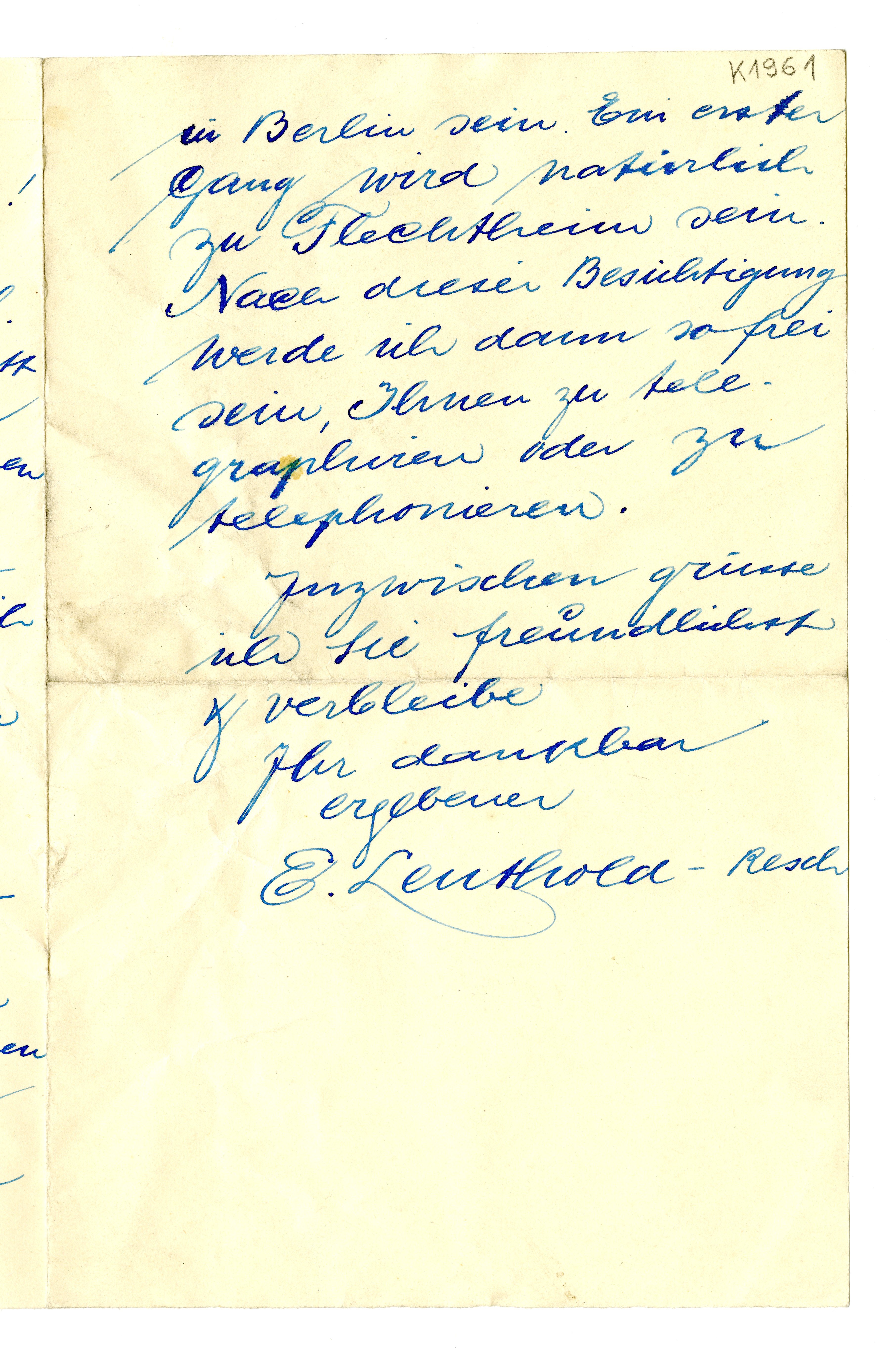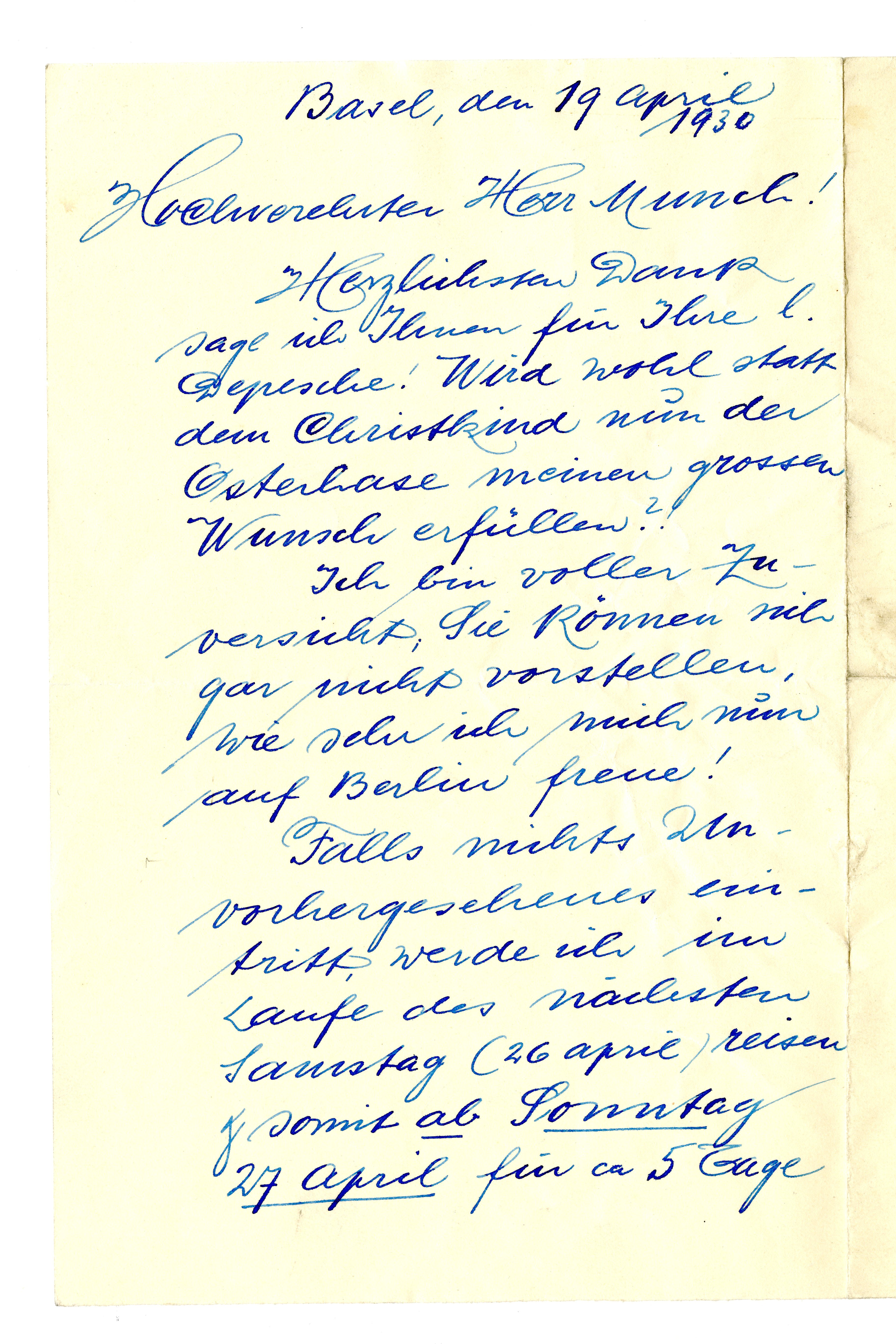 MM K 1961, Munchmuseet. Datert 19.04.1930. Brev fra E. Leuthold-Resch.
