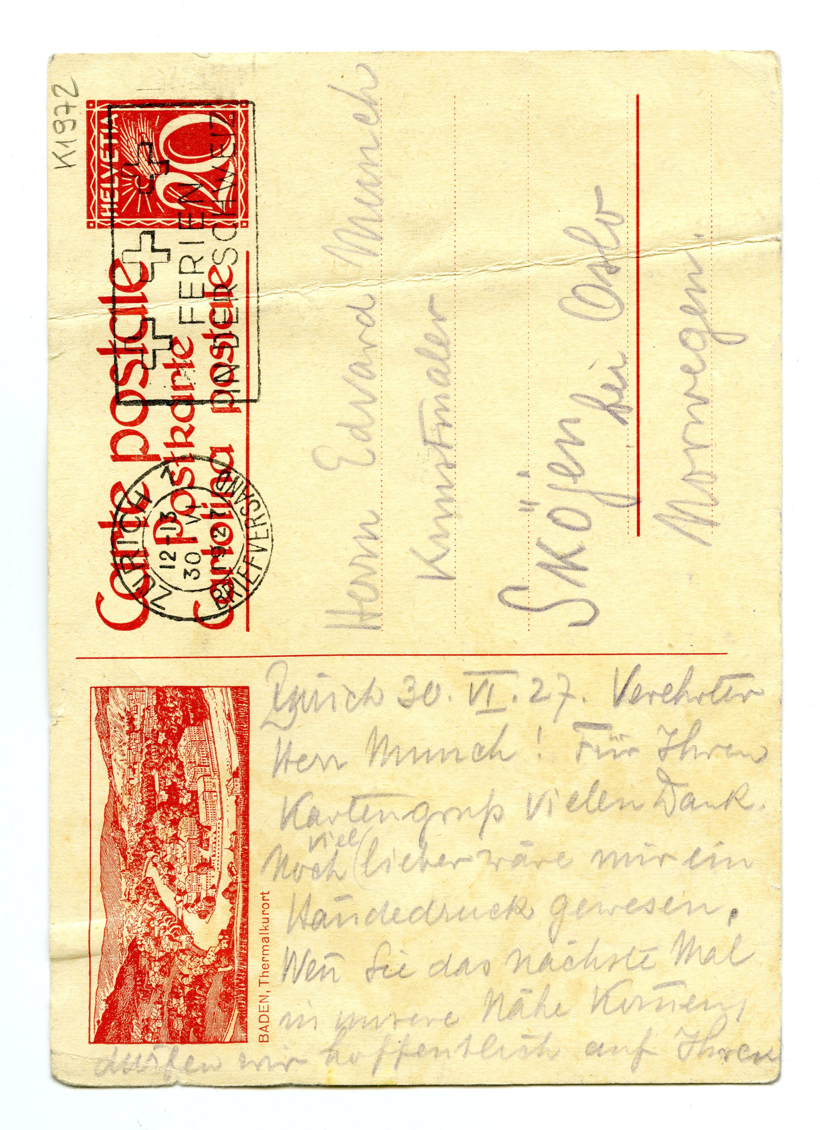 MM K 1972, Munchmuseet. Datert 30.06.1927. Brev fra Alfred Rütschi.
