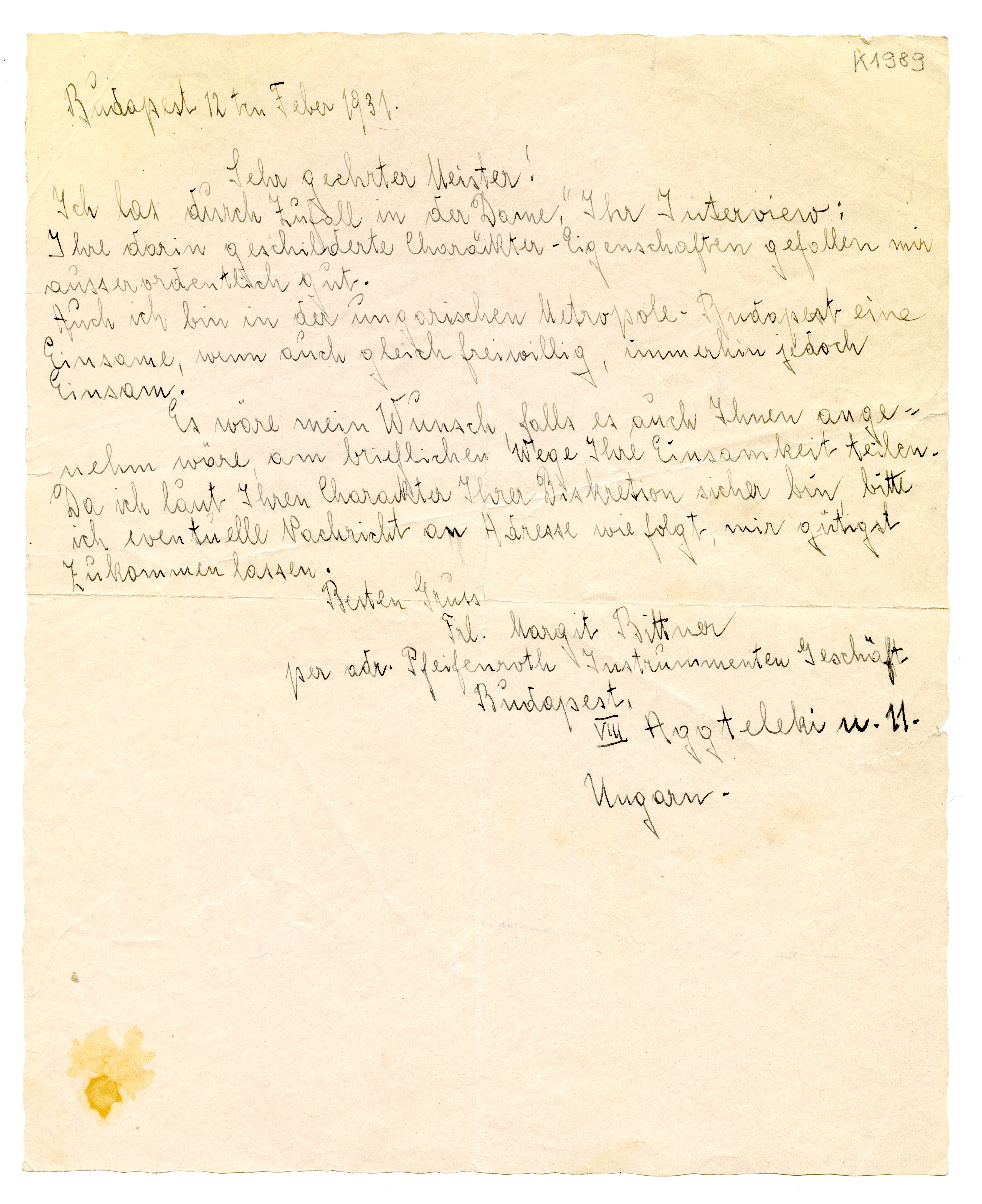 MM K 1989, Munchmuseet. Datert 12.02.1931. Brev fra Margit Bittner.