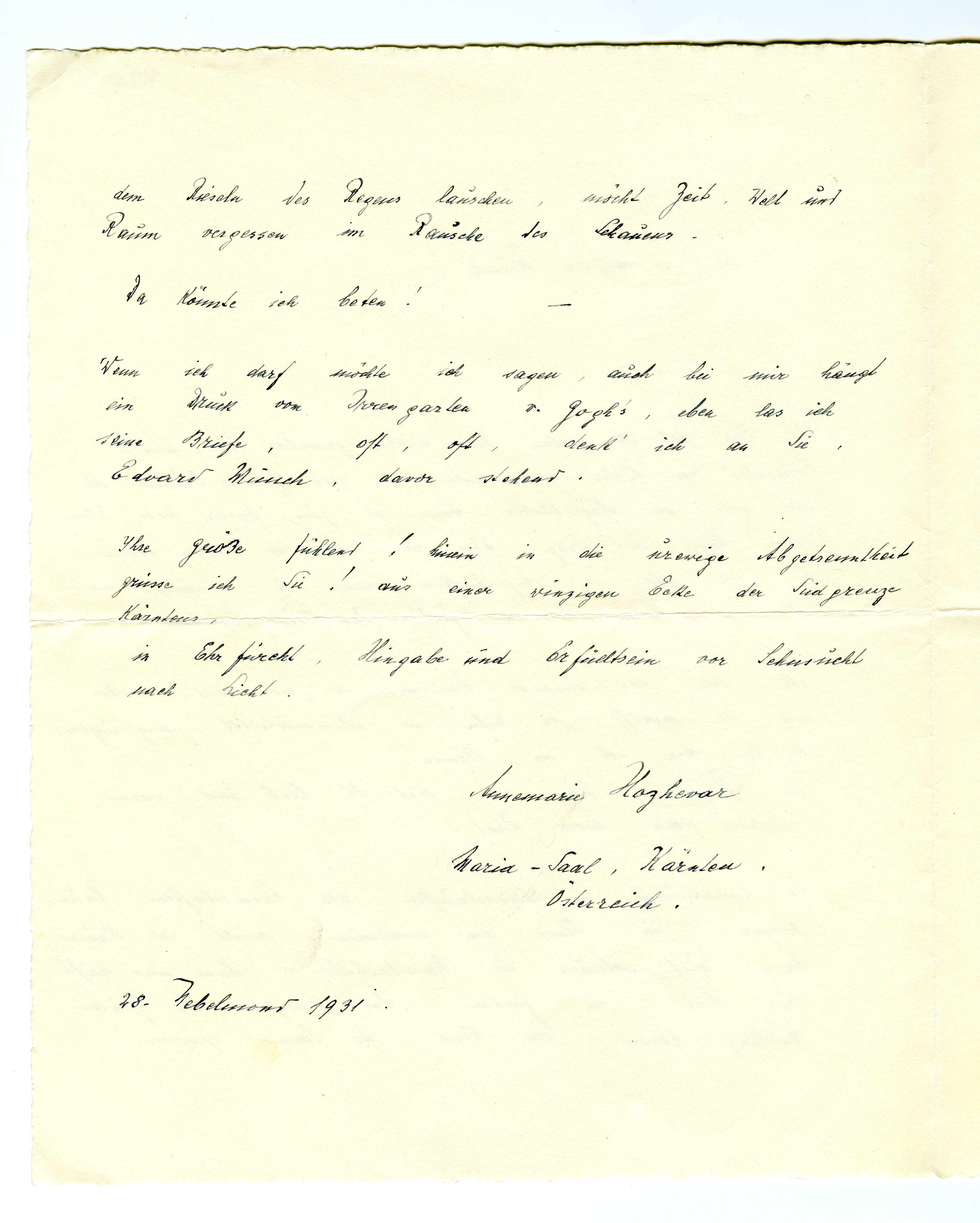 MM K 2002, Munchmuseet. Datert 28.11.1931. Brev fra Annemarie Hozhevar.