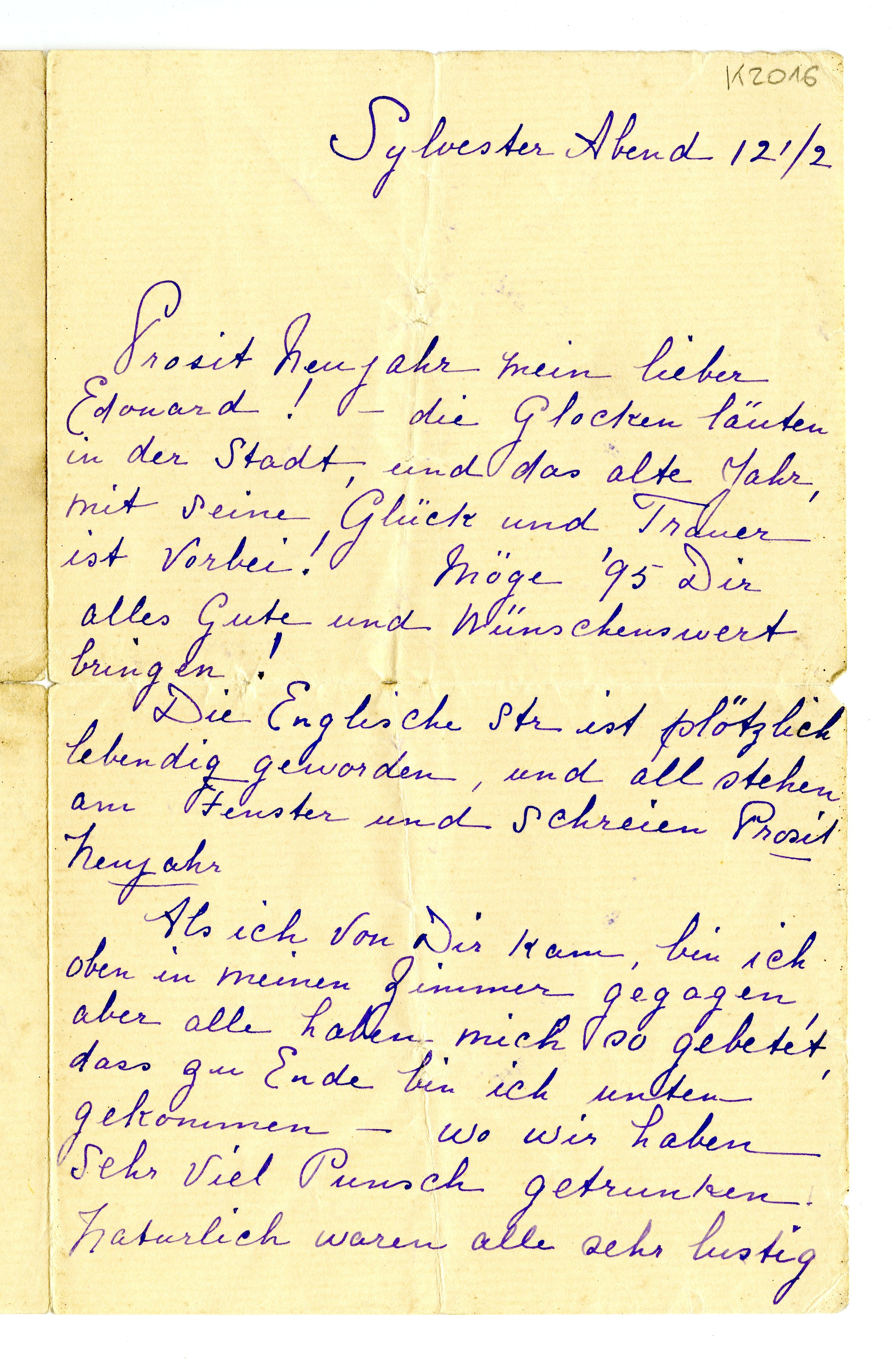 MM K 2016, Munchmuseet. Datert 31.12.1894. Brev fra Kate Crawley.