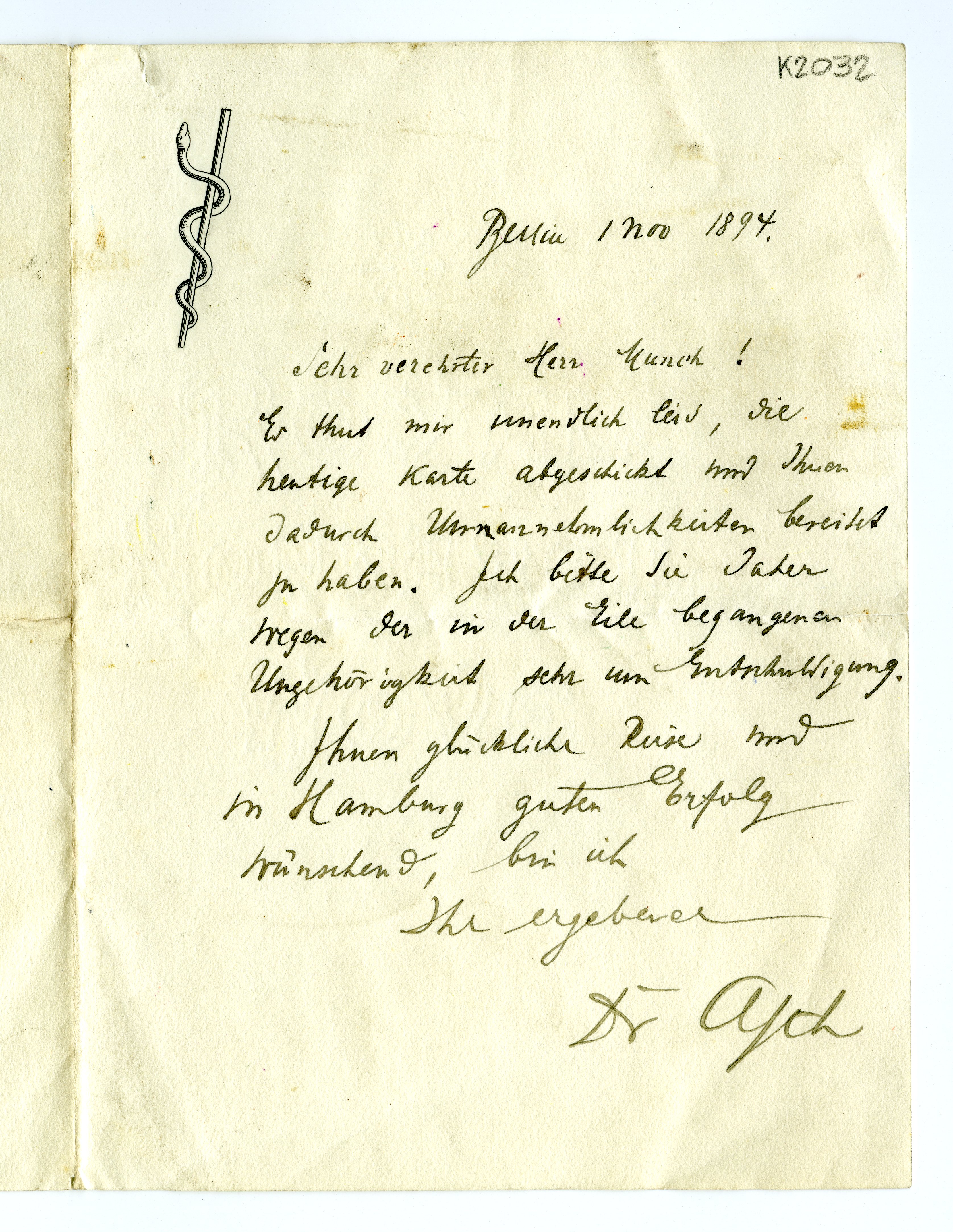 MM K 2032, Munchmuseet. Datert 01.11.1894. Brev fra Max Asch.