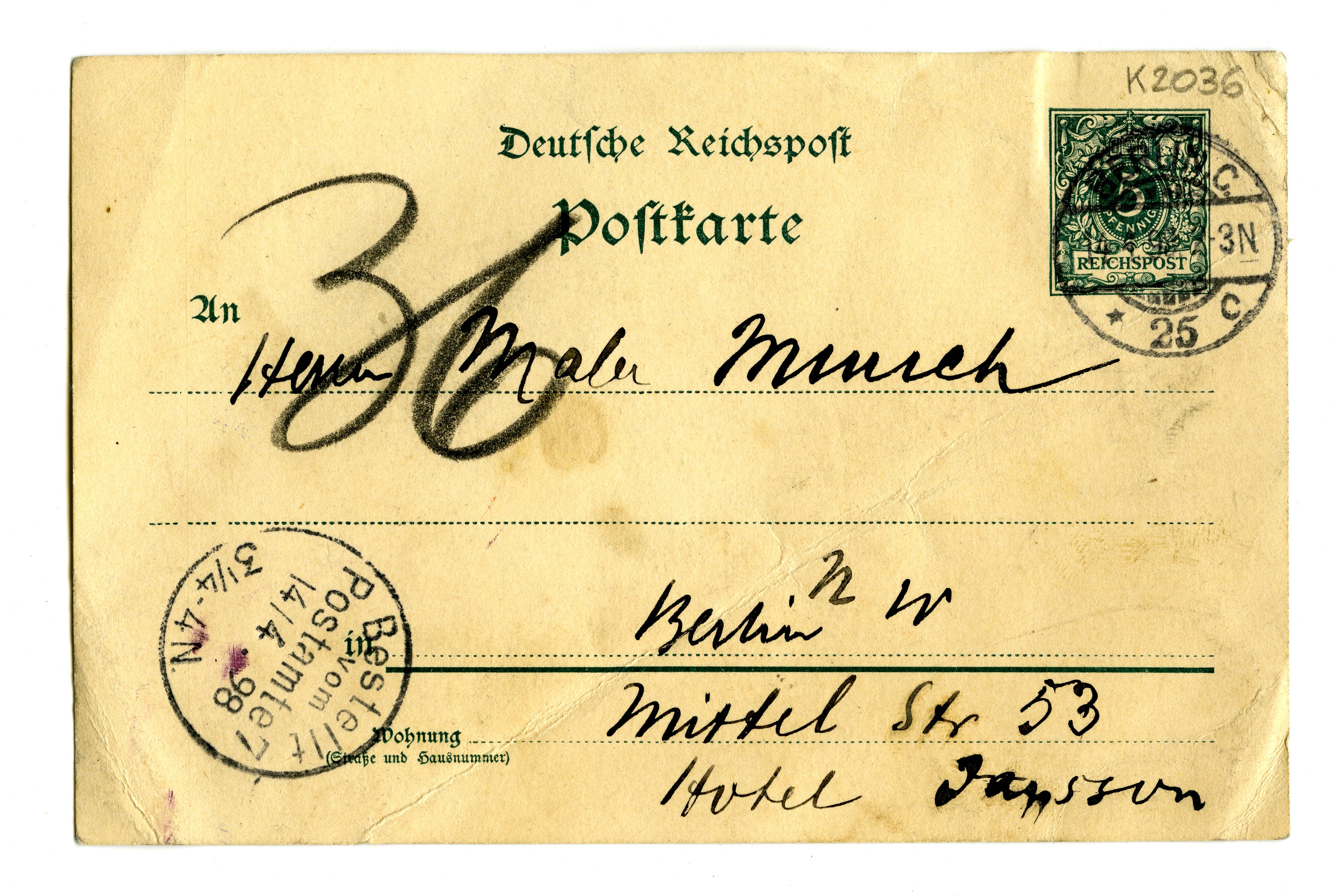MM K 2036, Munchmuseet. Datert 14.04.1898. Brev fra Max Asch.