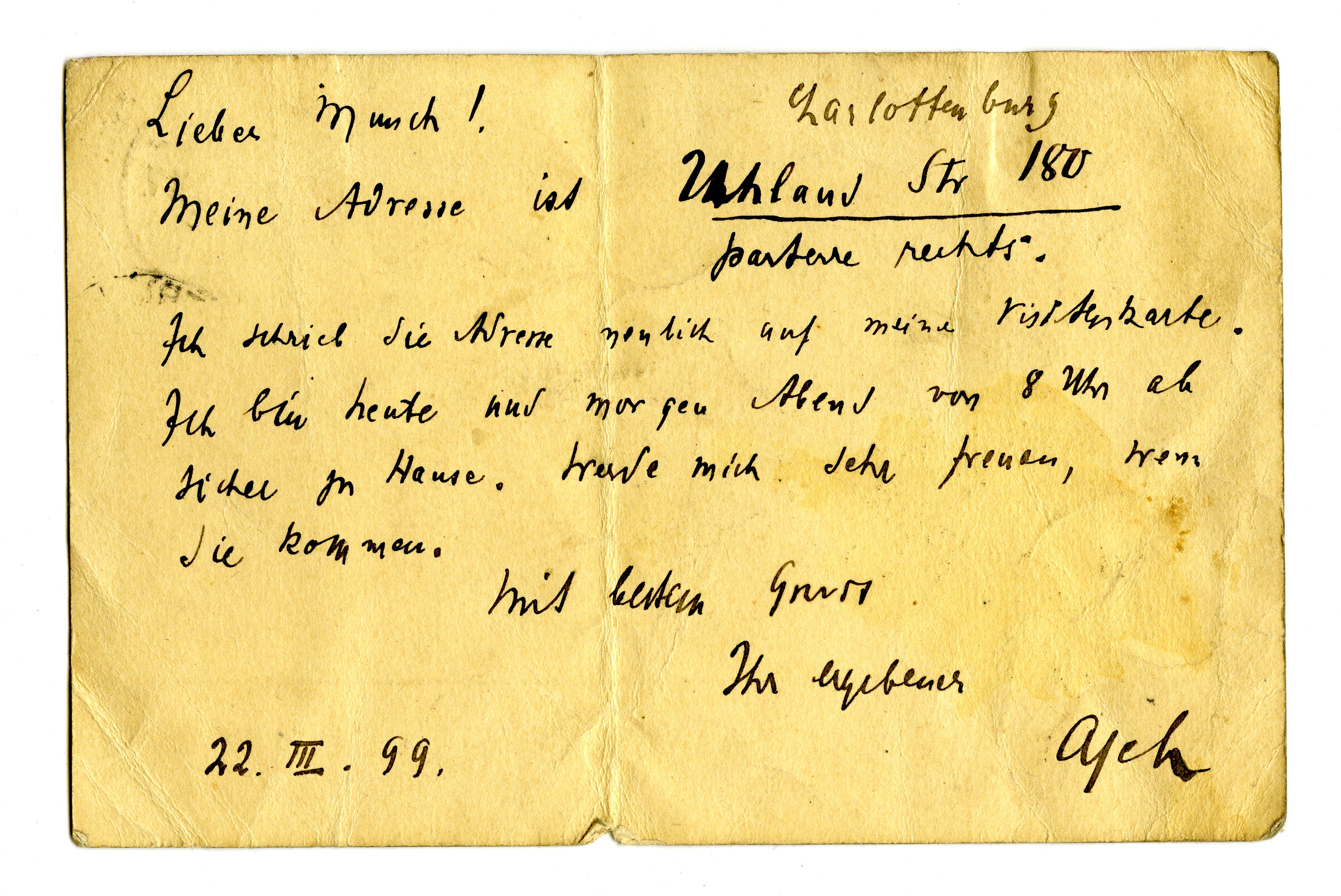MM K 2037, Munchmuseet. Datert 22.03.1899. Brev fra Max Asch.