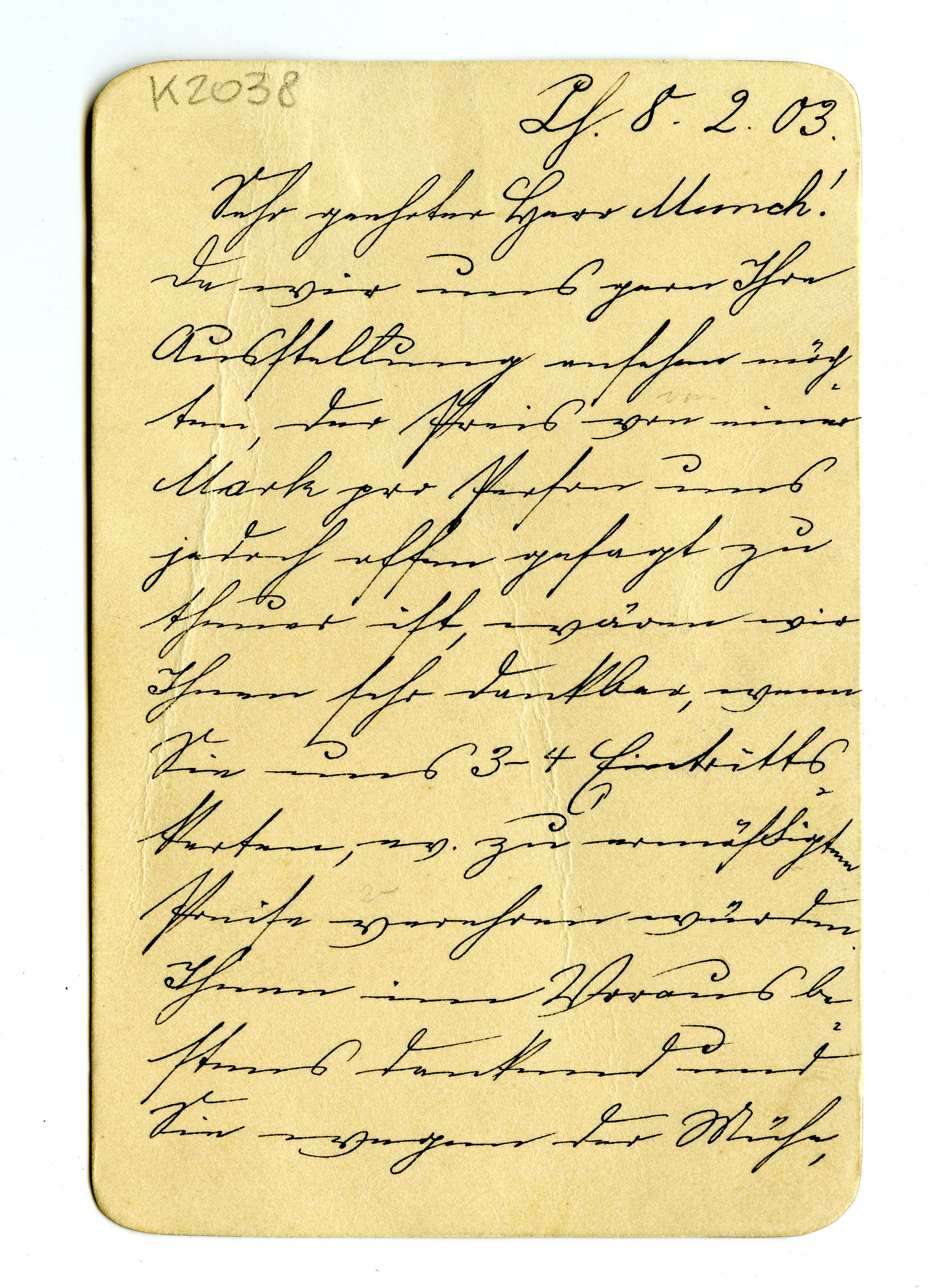 MM K 2038, Munchmuseet. Datert 08.02.1903. Brev fra Henni Asch.