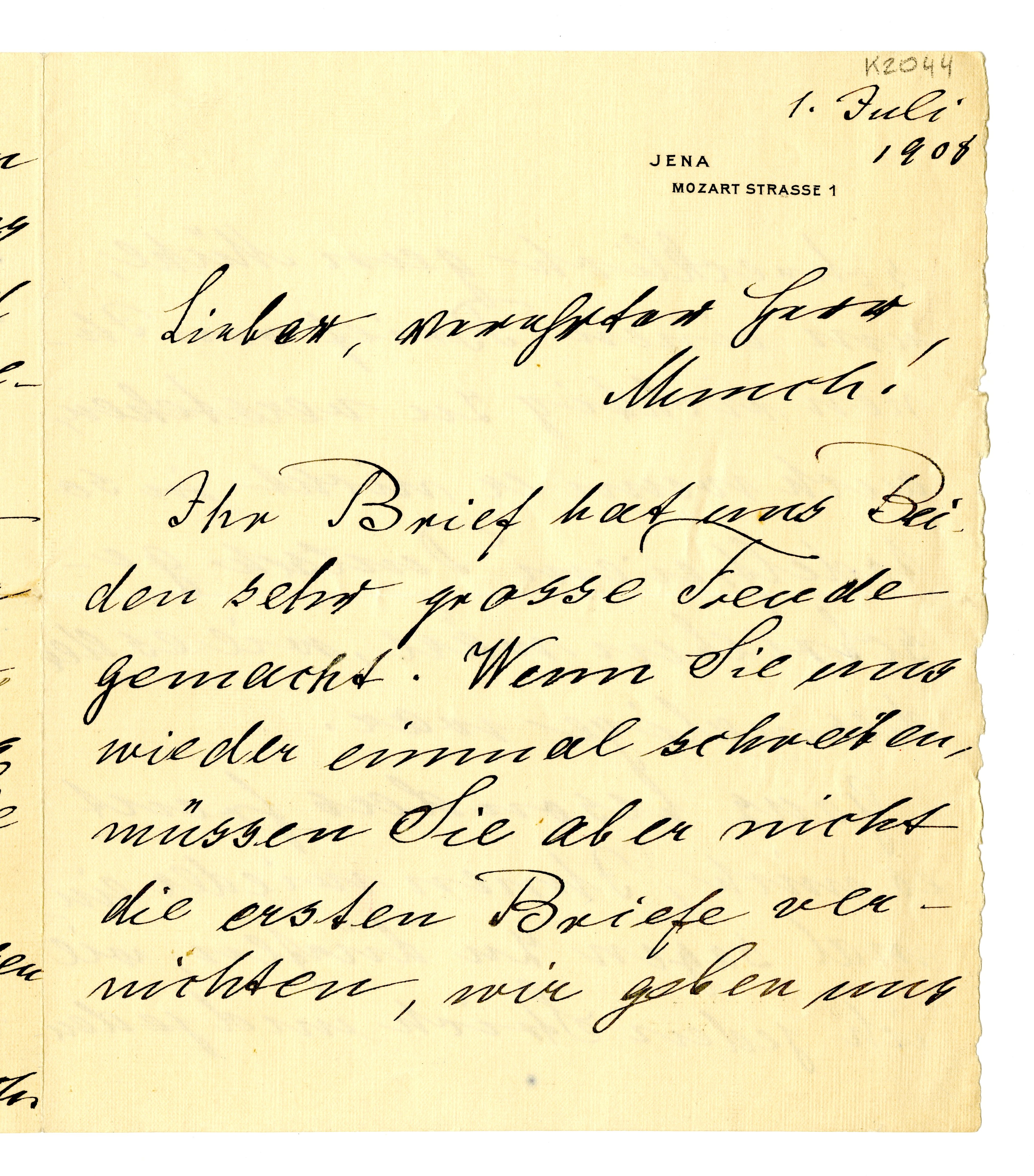 MM K 2044, Munchmuseet. Datert 01.07.1908. Brev fra Anna Auerbach.
