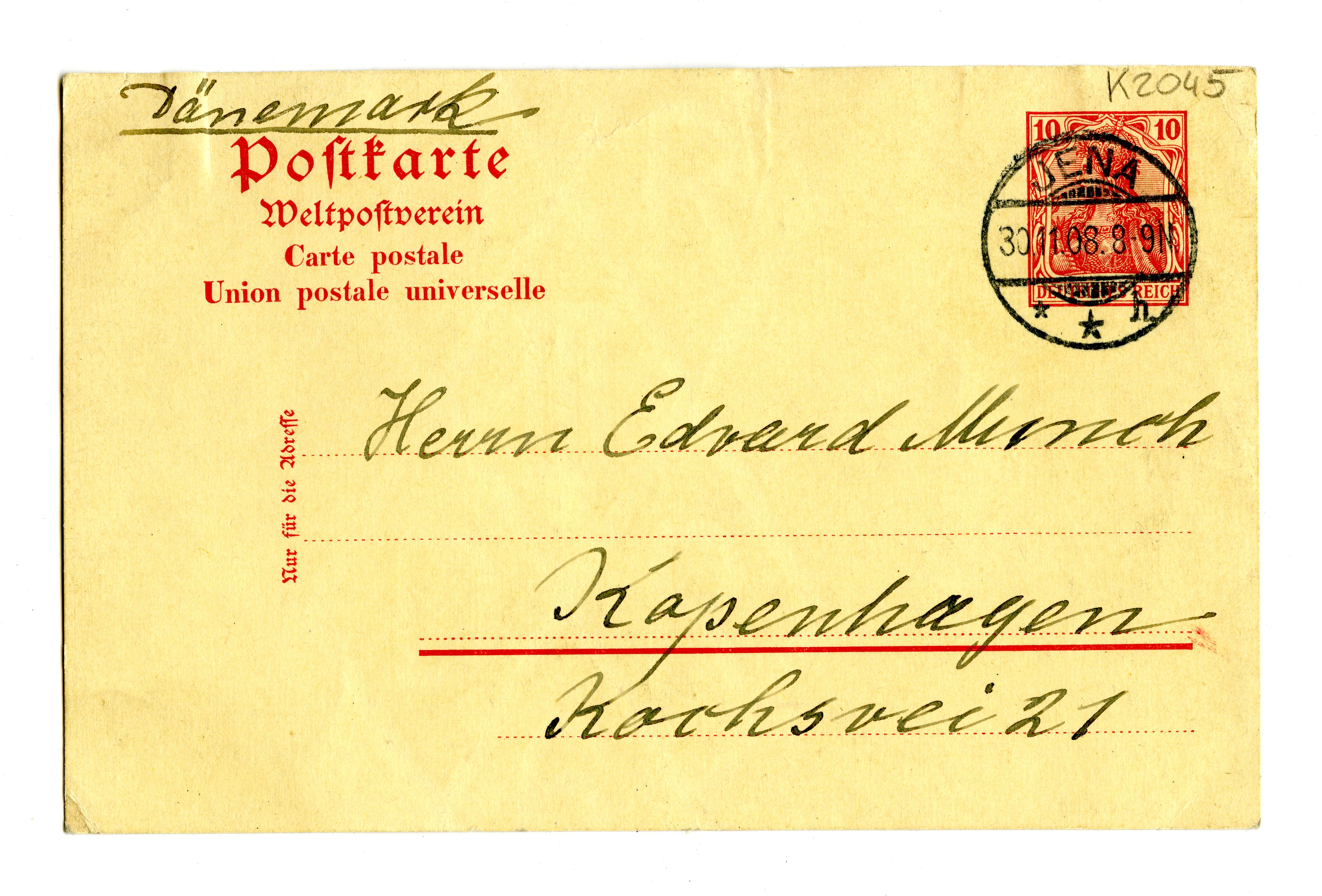 MM K 2045, Munchmuseet. Datert 30.11.1908. Brev fra Felix Auerbach, Anna Auerbach.