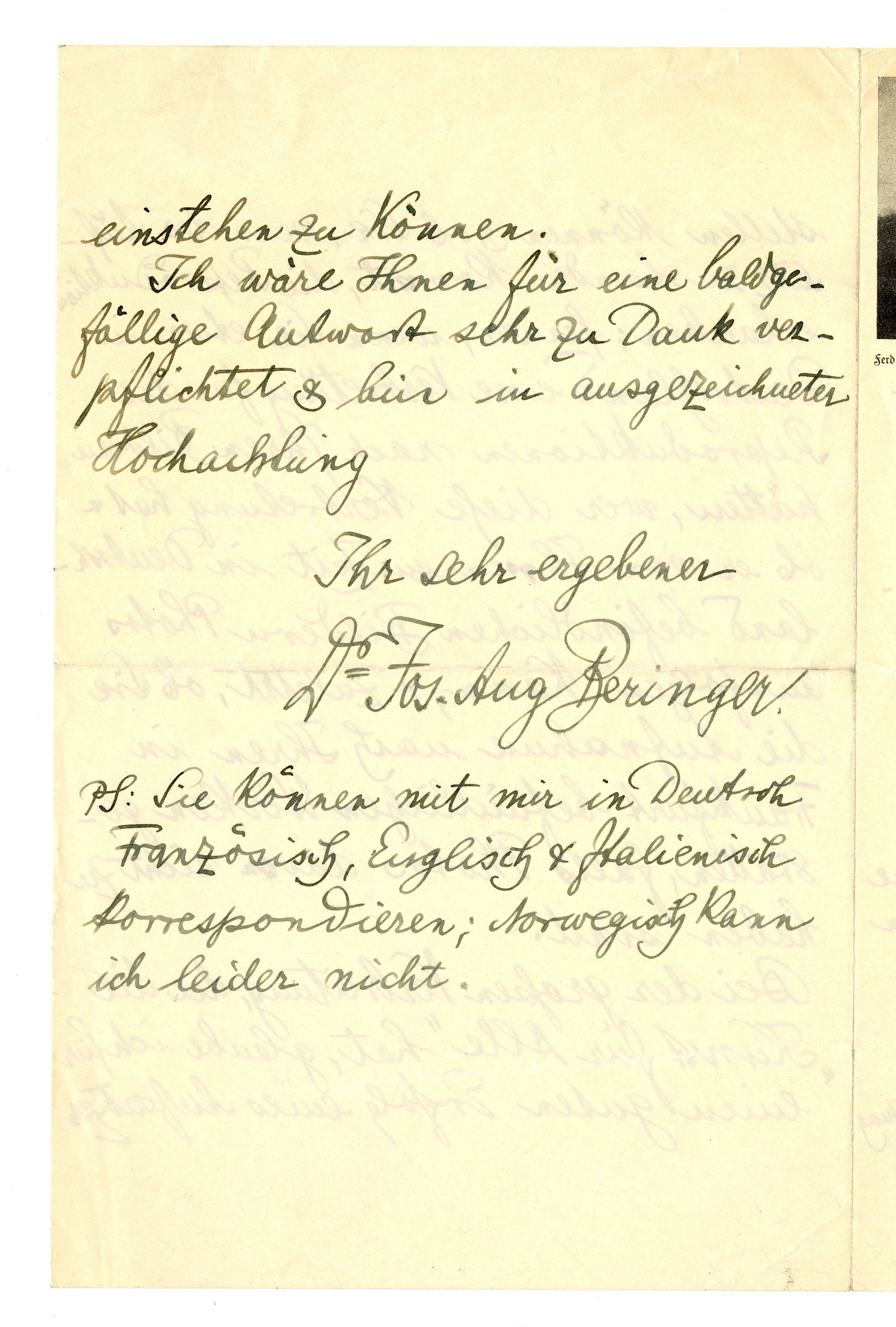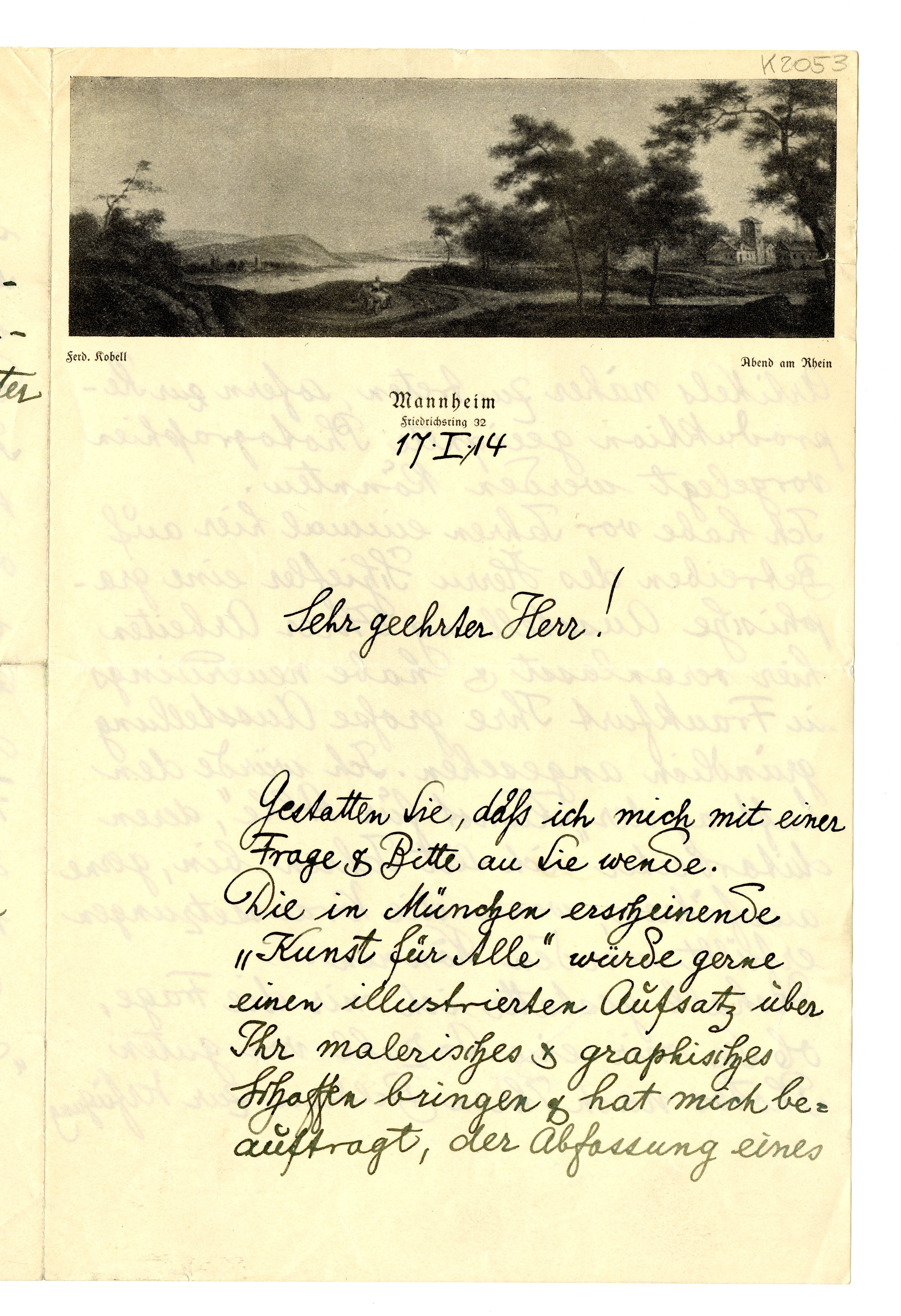 MM K 2053, Munchmuseet. Datert 17.01.1914. Brev fra Jos. Aug. Beringer.