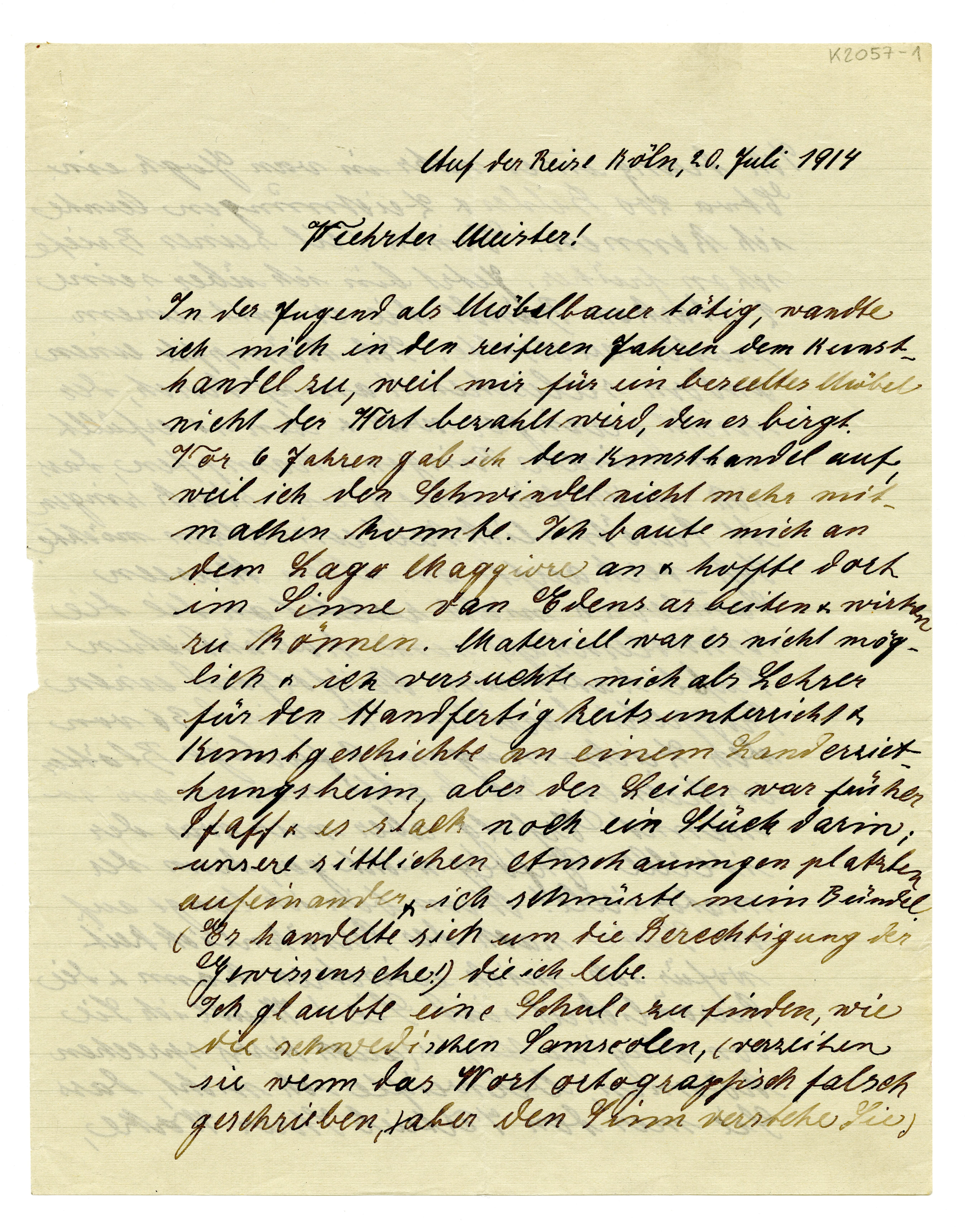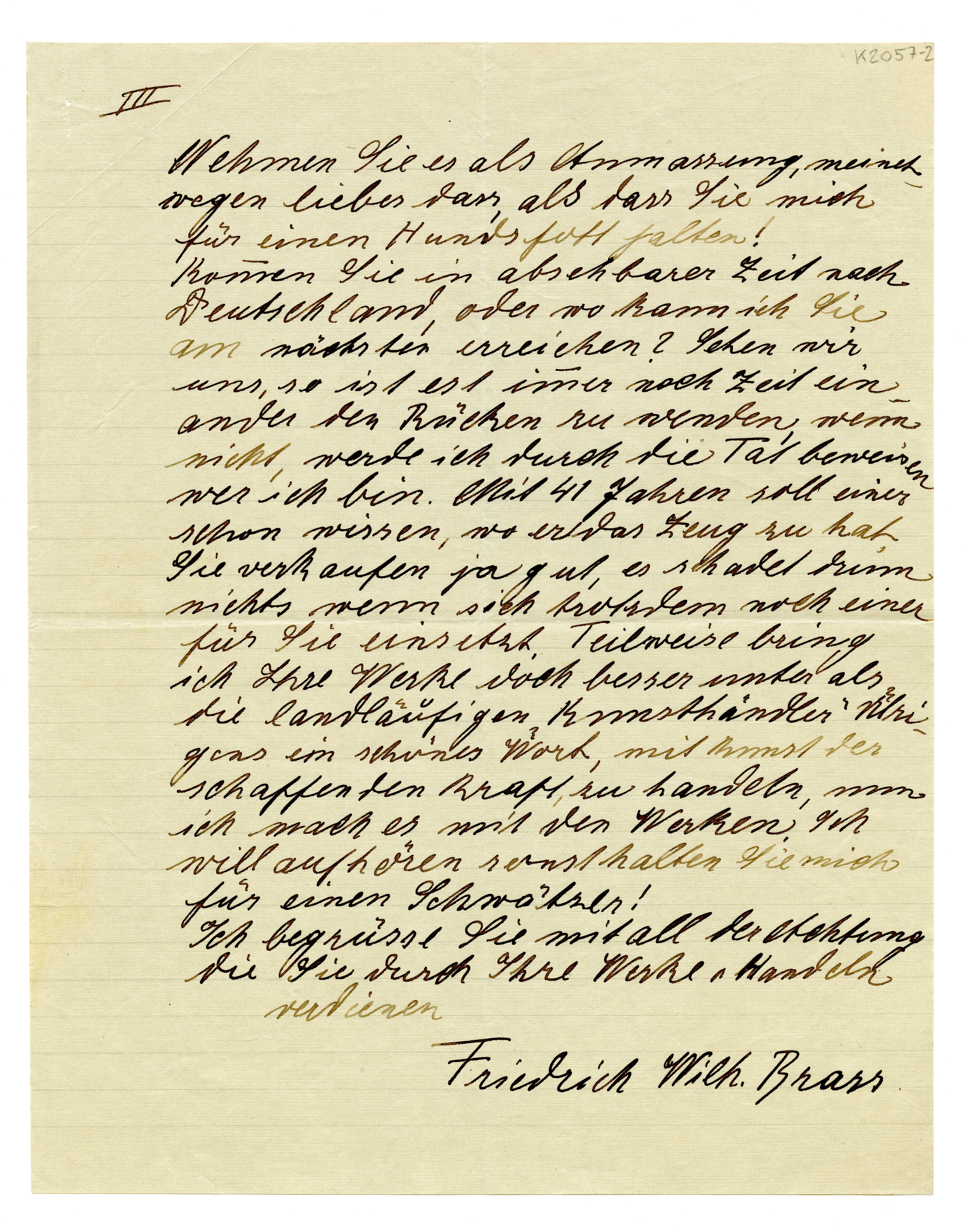 MM K 2057, Munchmuseet. Datert 20.07.1914. Brev fra Friedrich Wilhelm Brass.