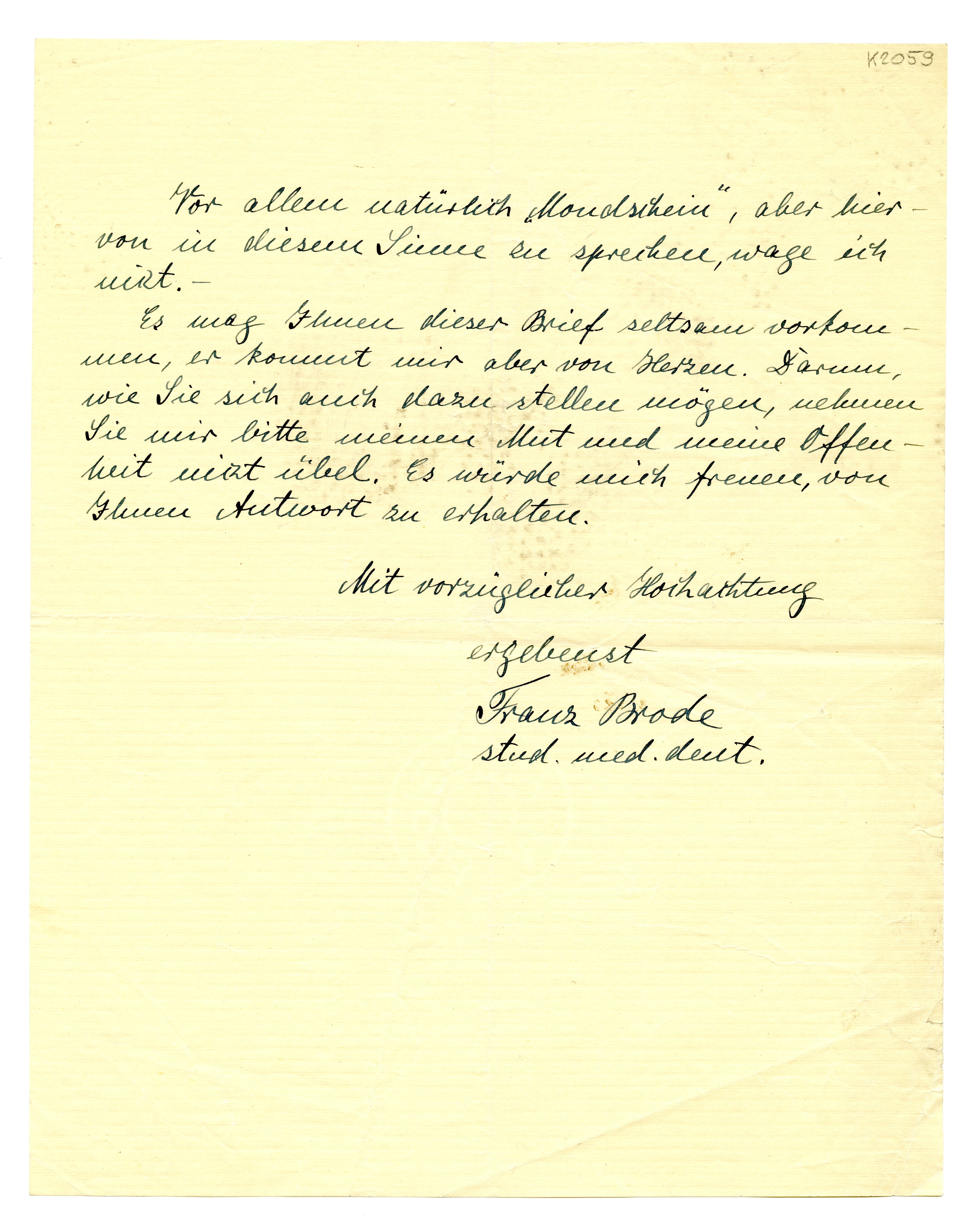 MM K 2059, Munchmuseet. Ikke datert. Brev fra Franz Brode.