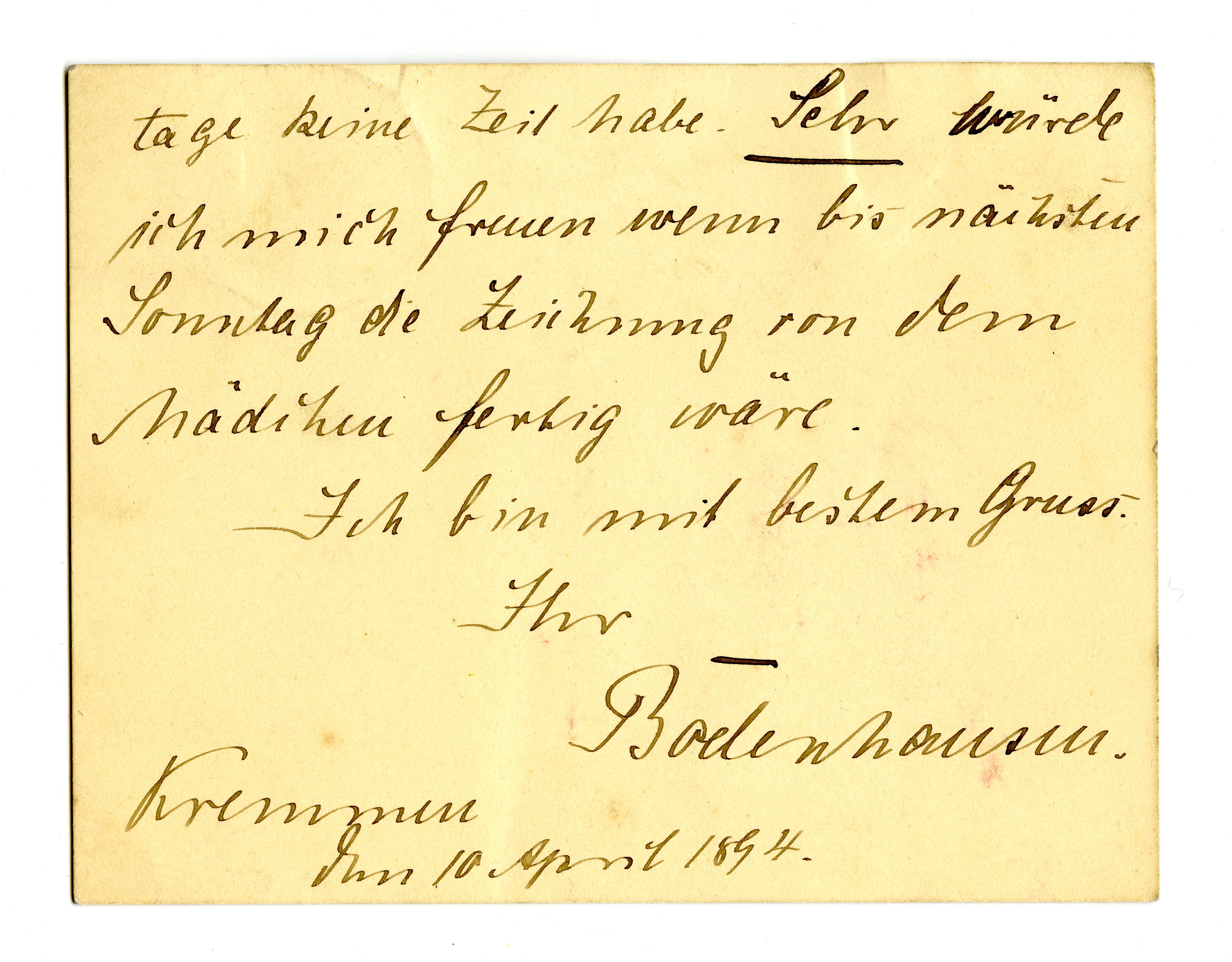 MM K 2069, Munchmuseet. Datert 10.04.1894. Brev fra Eberhard von Bodenhausen.