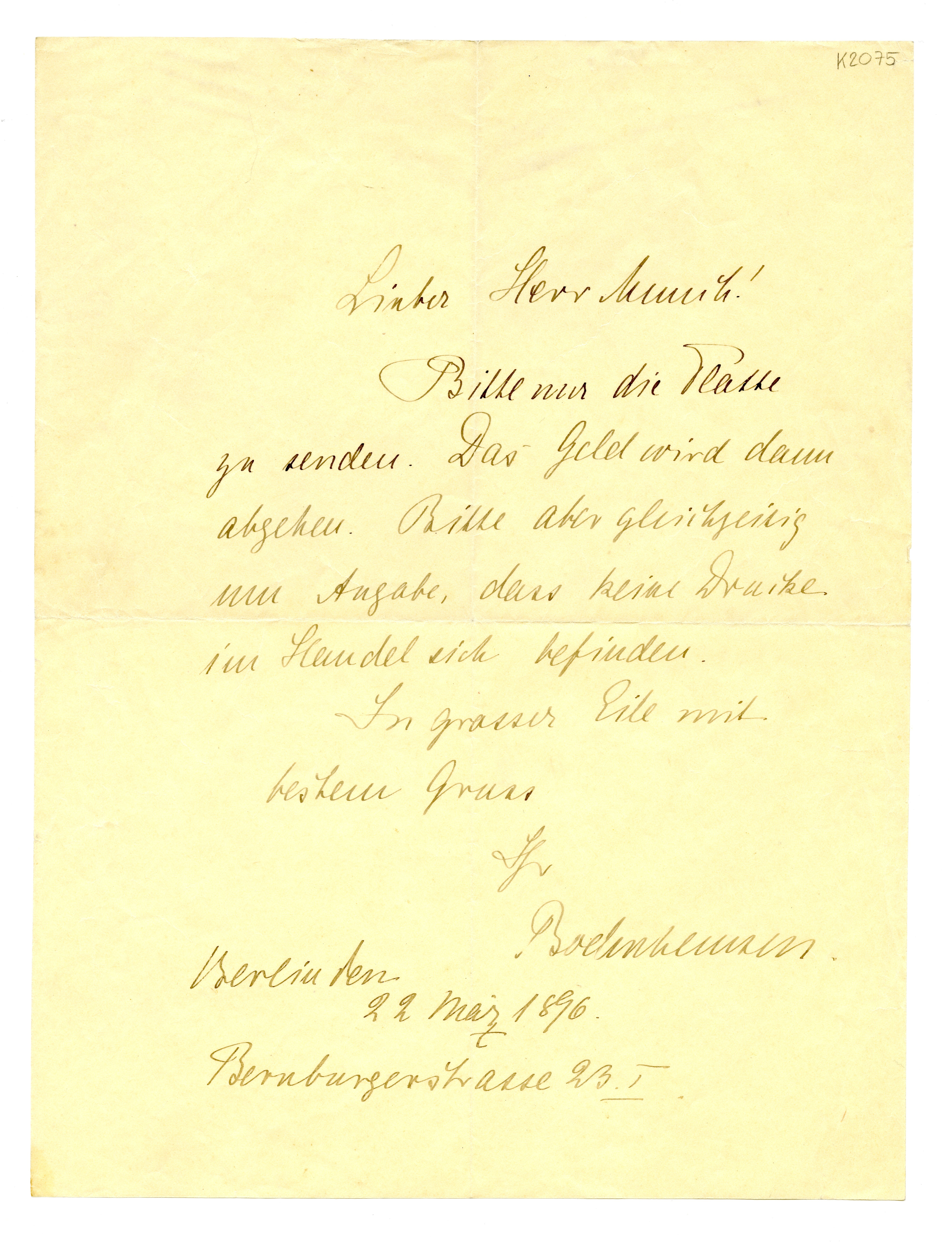 MM K 2075, Munchmuseet. Datert 22.03.1896. Brev fra Eberhard von Bodenhausen.