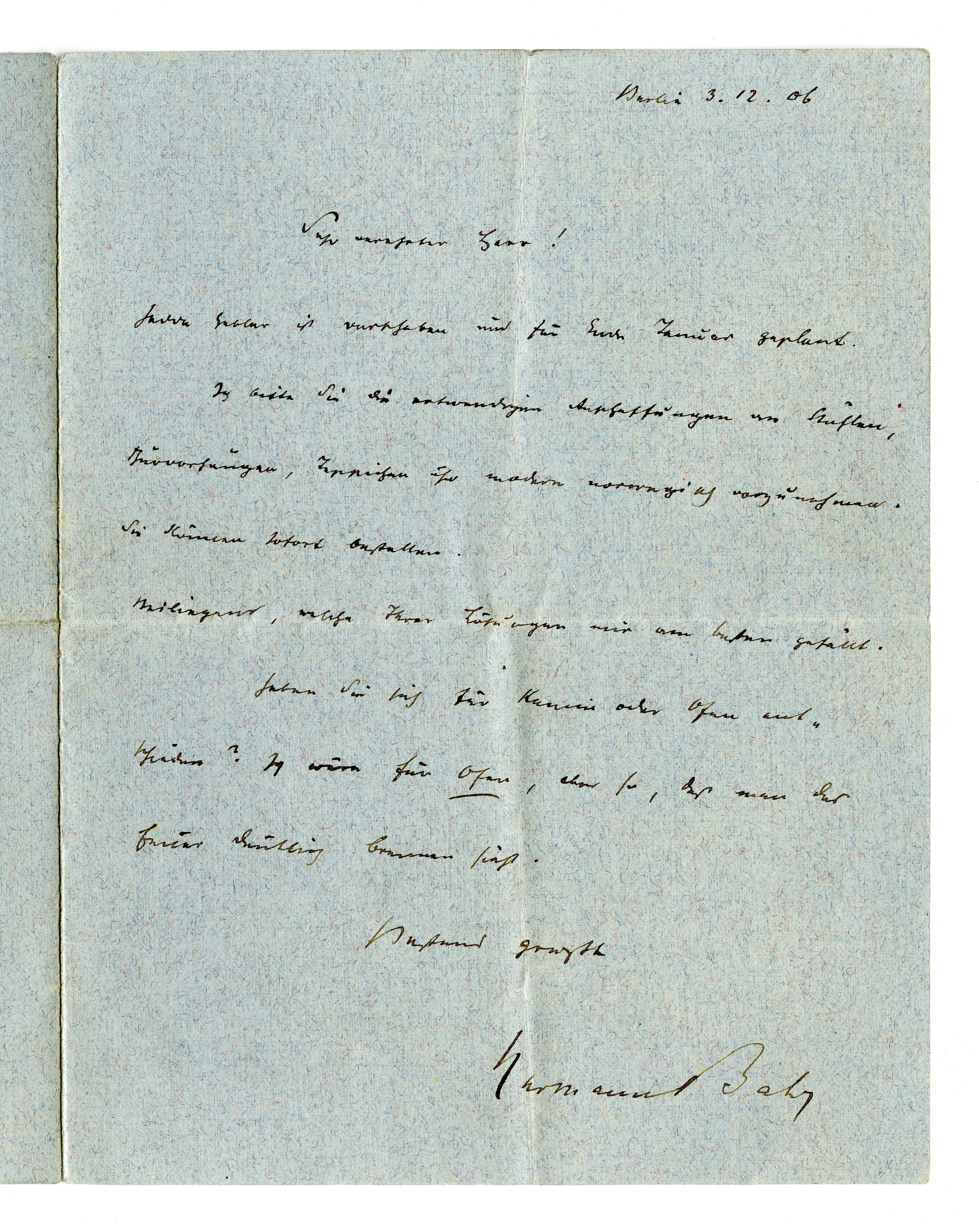 MM K 2079, Munchmuseet. Datert 03.12.1906. Brev fra Hermann Bahr.