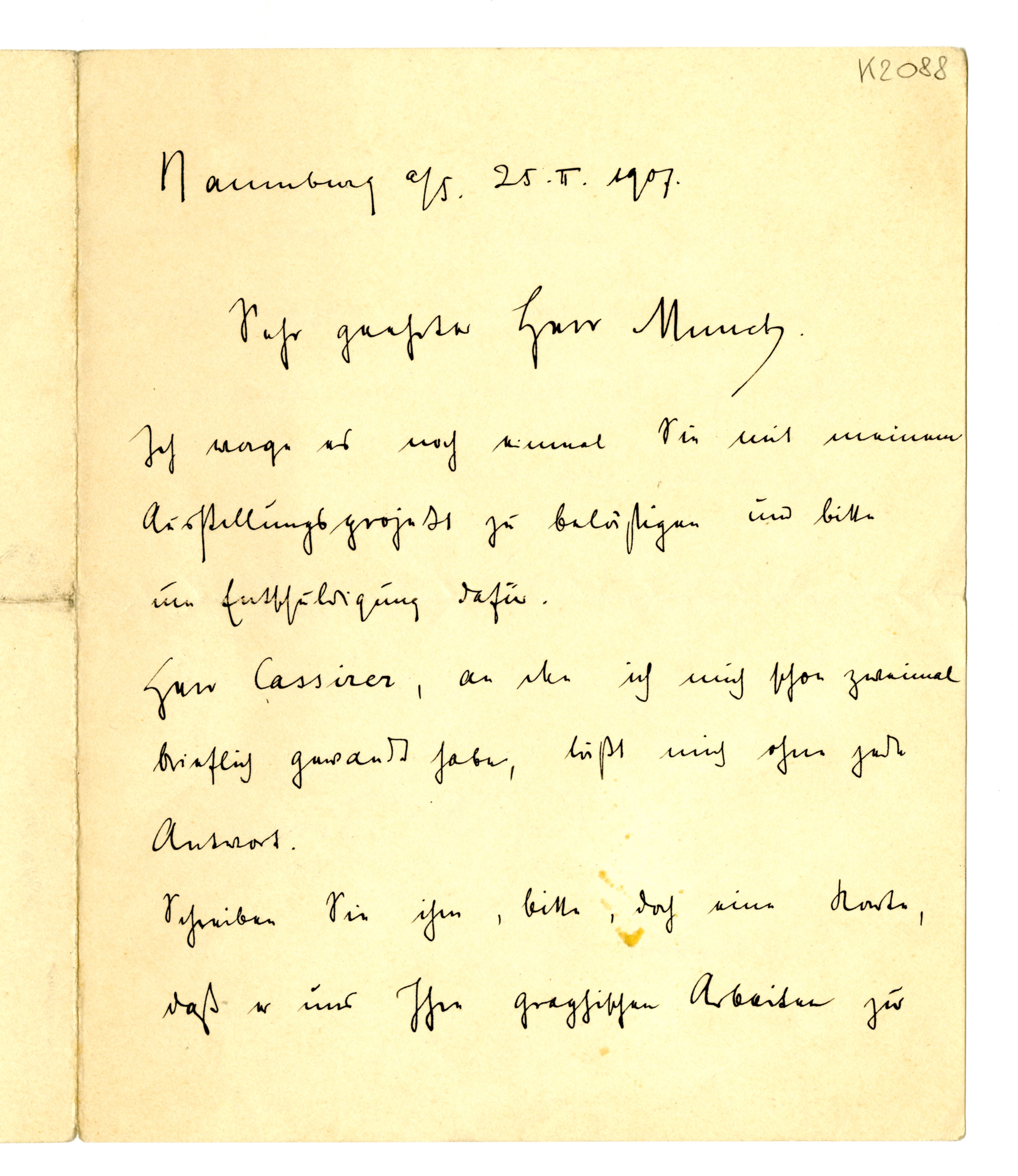 MM K 2088, Munchmuseet. Datert 25.02.1907. Brev fra Ernst Borkowsky.