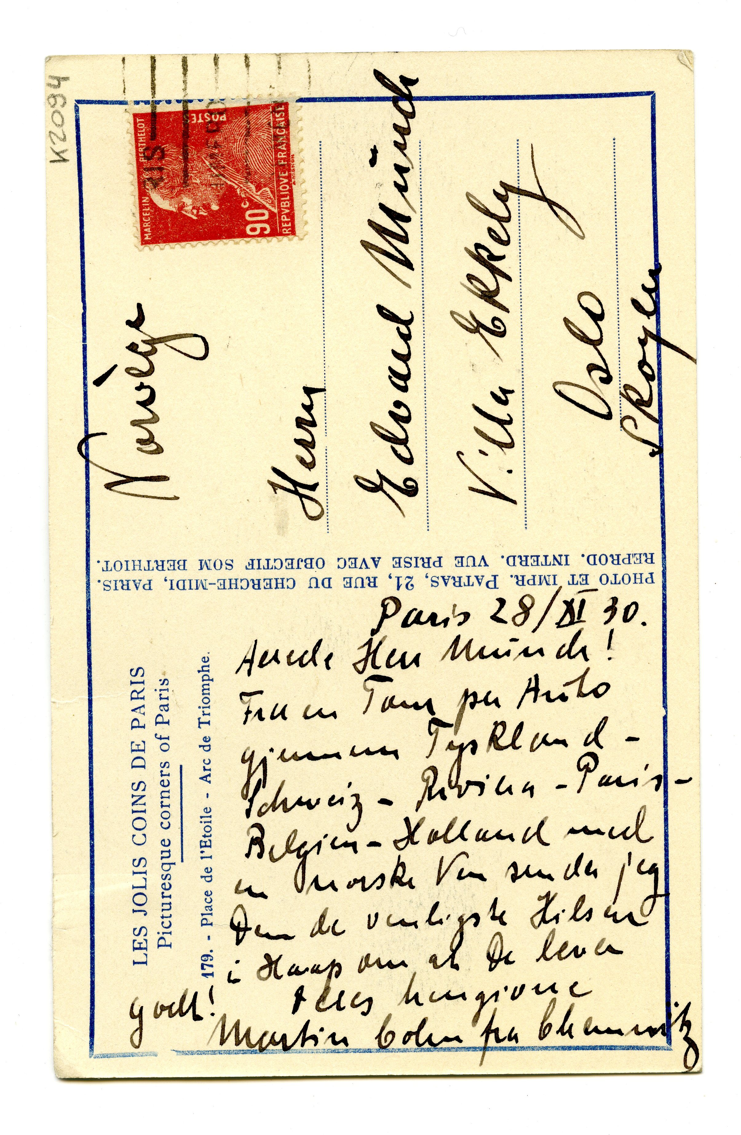 MM K 2094, Munchmuseet. Datert 28.11.1930. Brev fra Martin Cohn.