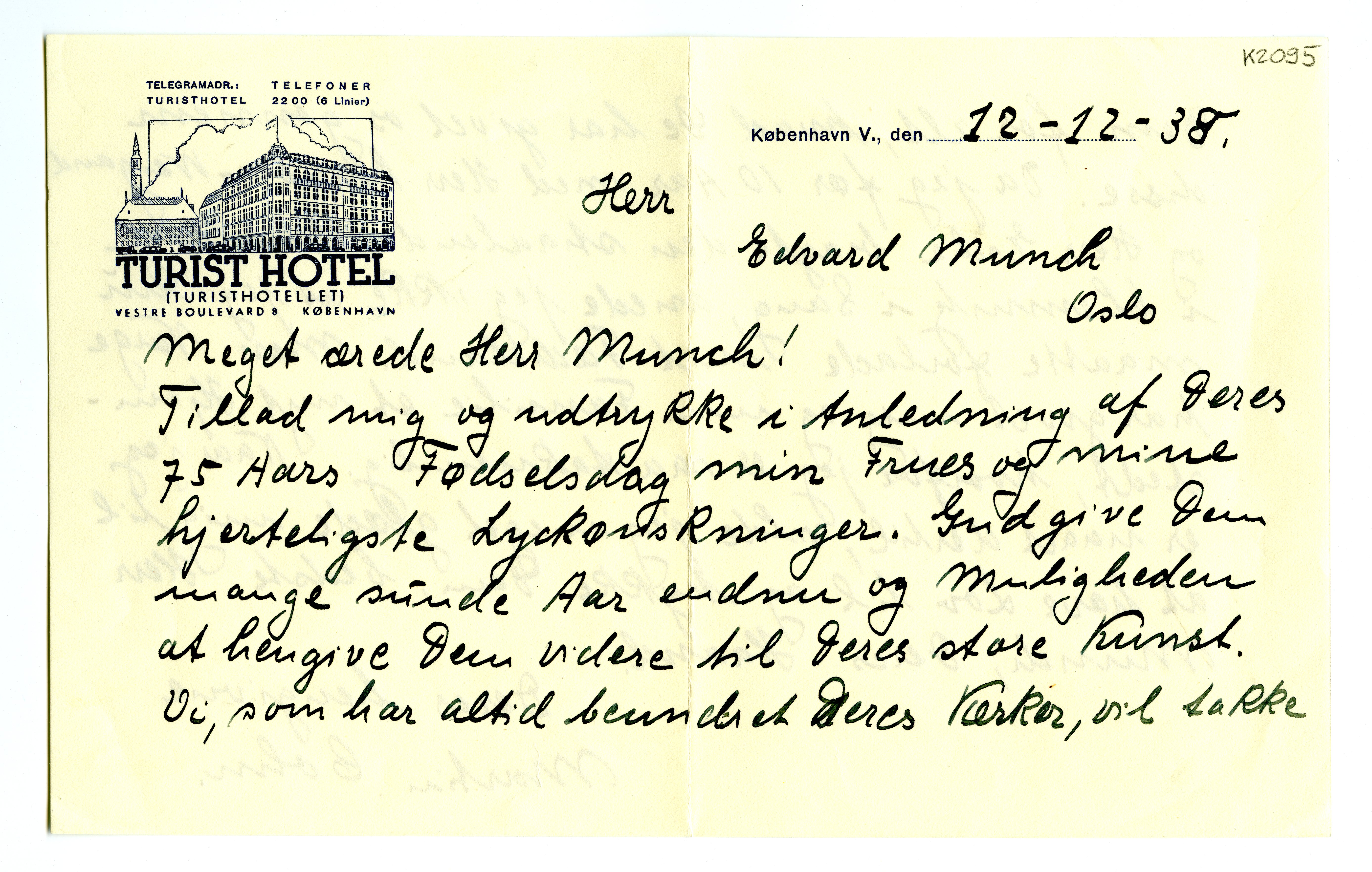 MM K 2095, Munchmuseet. Datert 12.12.1938. Brev fra Martin Cohn.