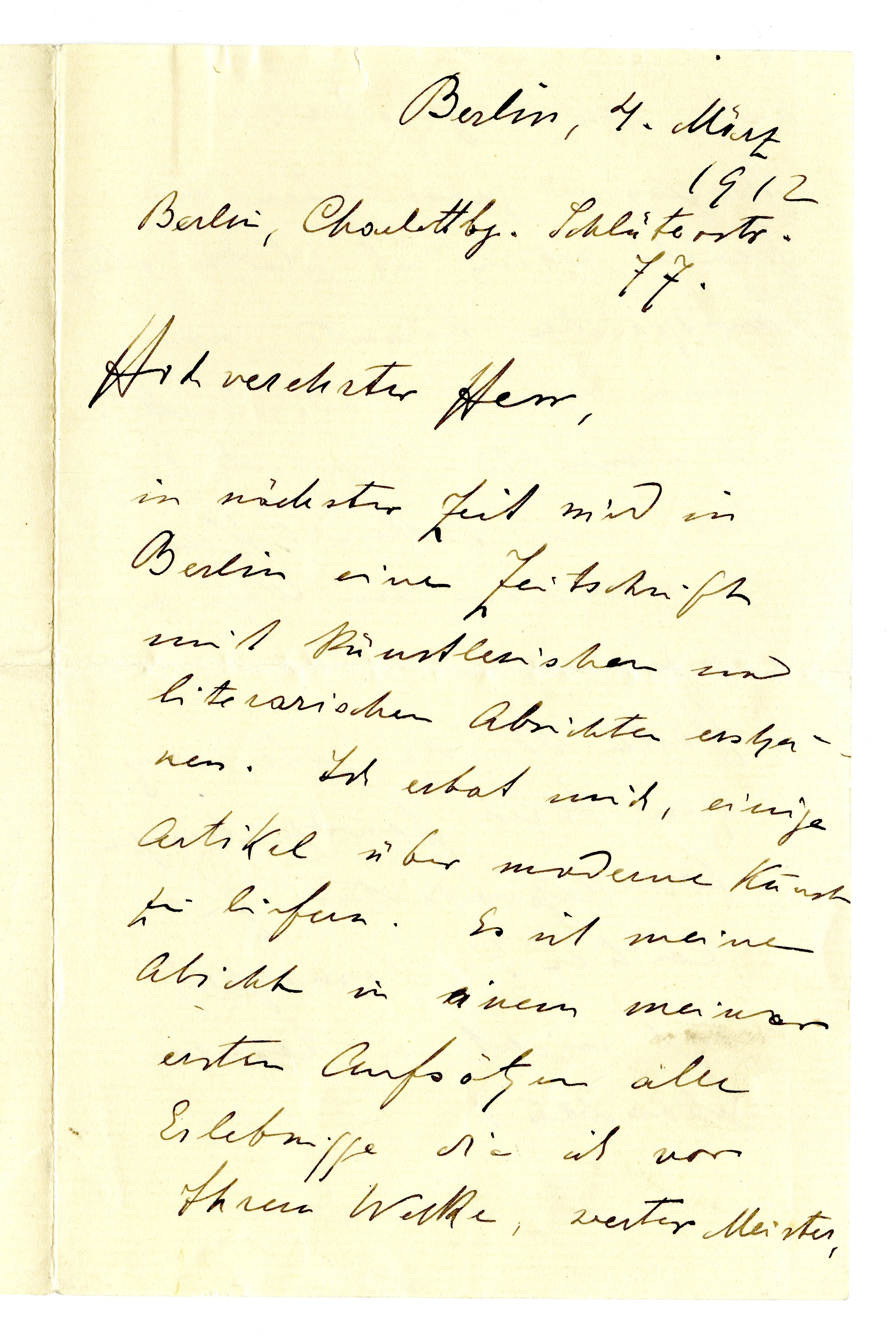 MM K 2101, Munchmuseet. Datert 04.03.1912. Brev fra Theodor Däubler.