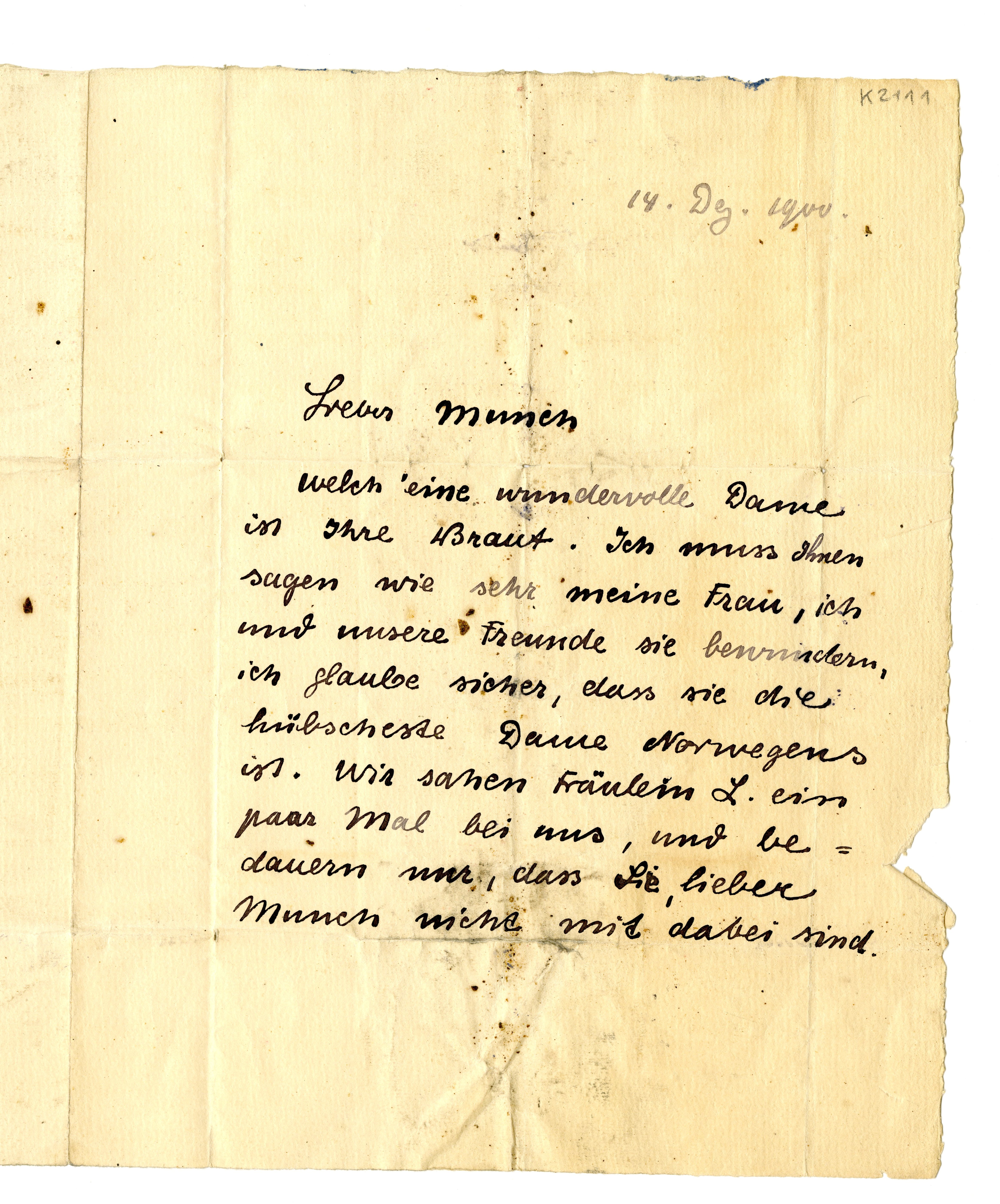 MM K 2111, Munchmuseet. Datert 14.12.1900. Brev fra Max Dauthendey.