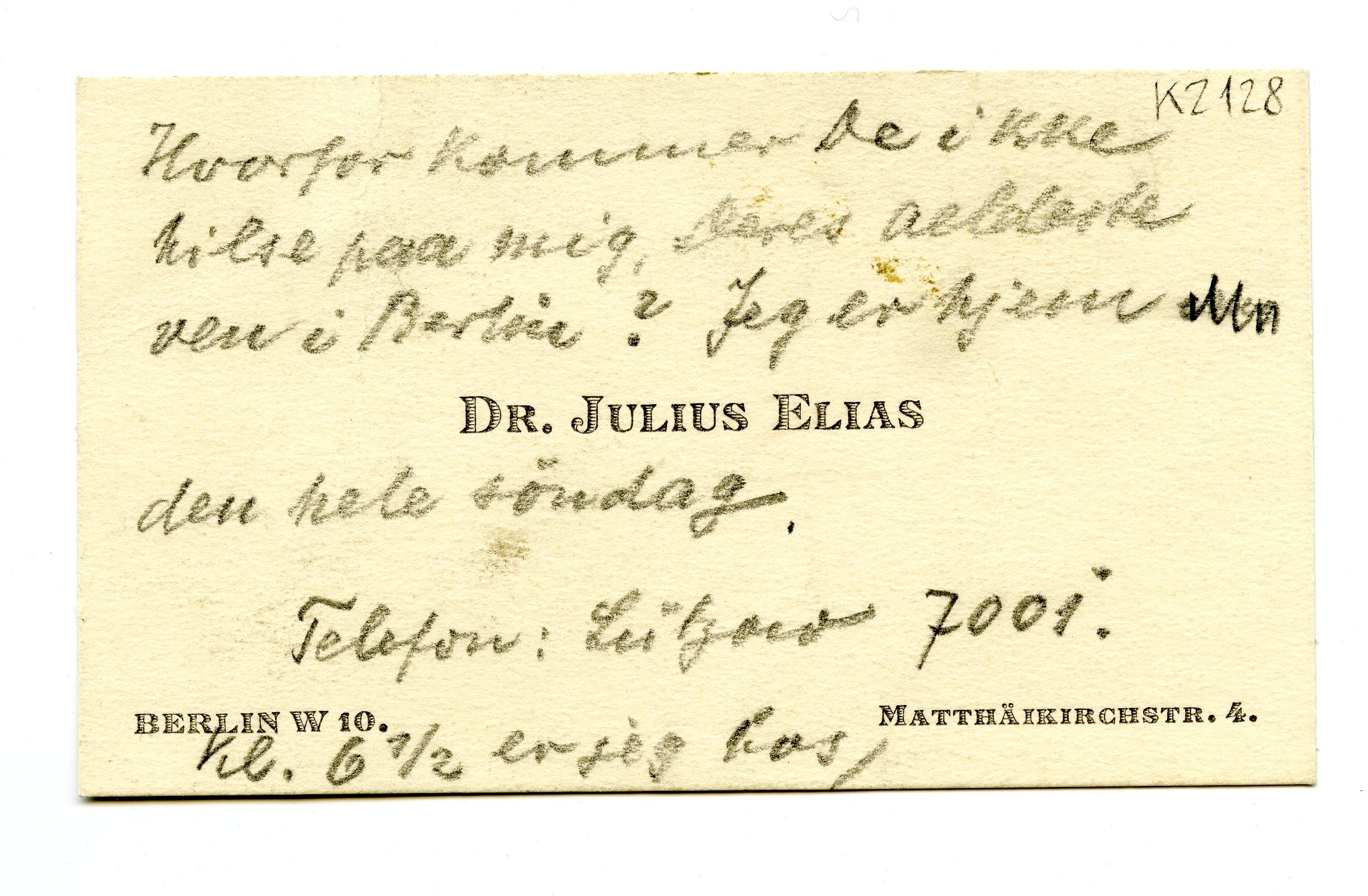 MM K 2128, Munchmuseet. Ikke datert. Brev fra Julius Elias.