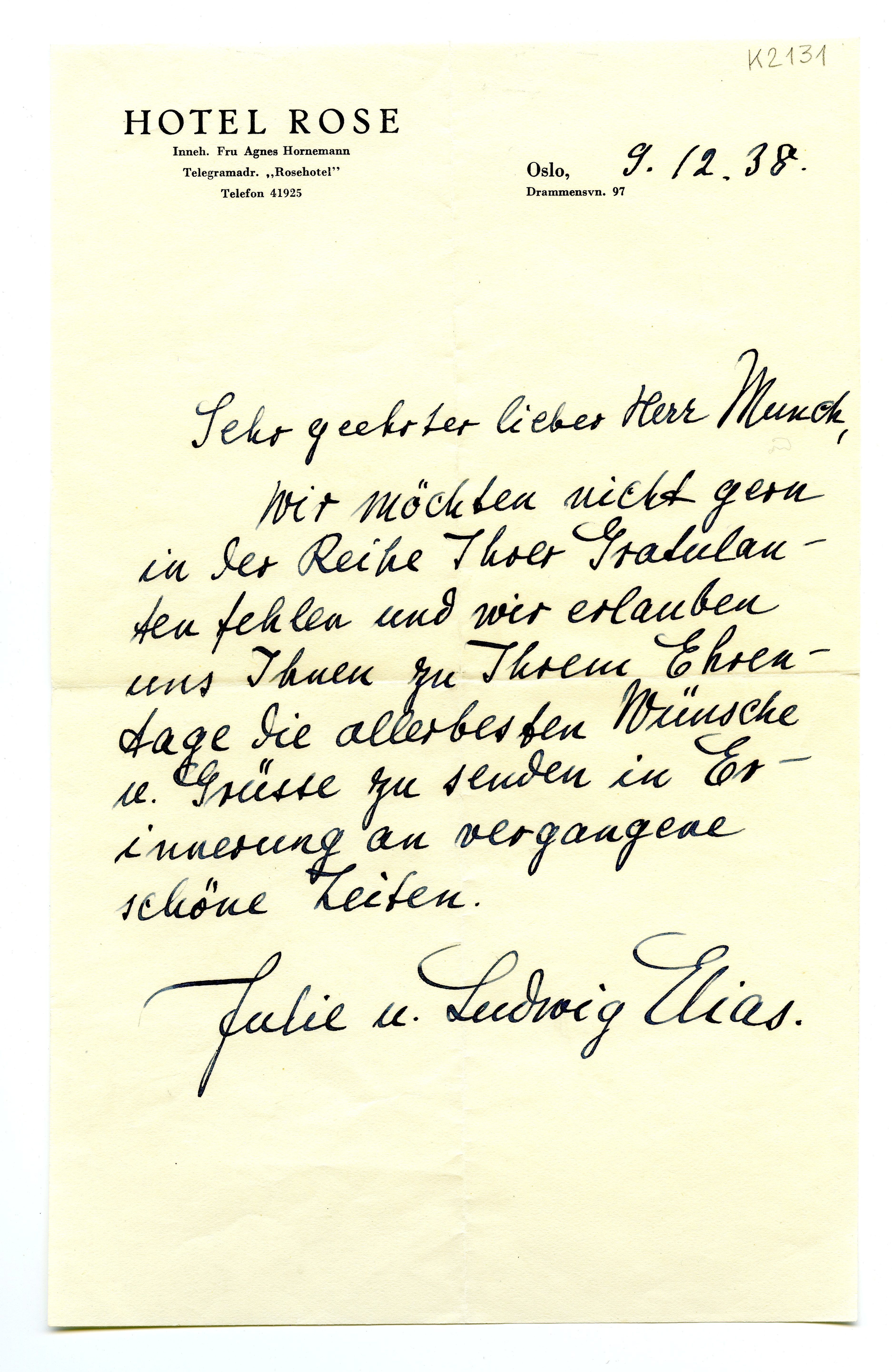 MM K 2131, Munchmuseet. Datert 09.12.1938. Brev fra Julie Elias, Ludwig Elias.