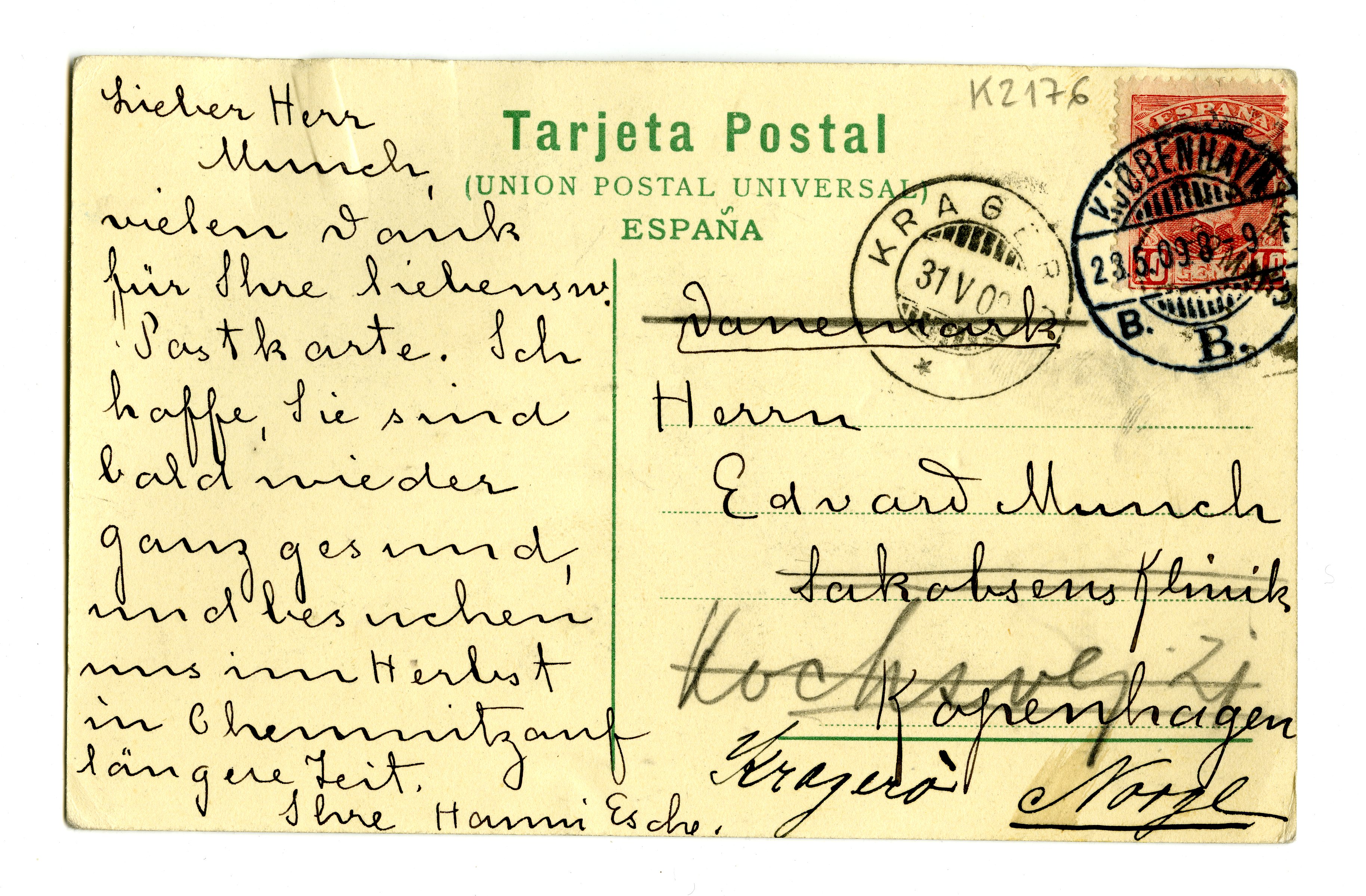 MM K 2176, Munchmuseet. Datert 23.05.1909. Brev fra Hanni Esche.